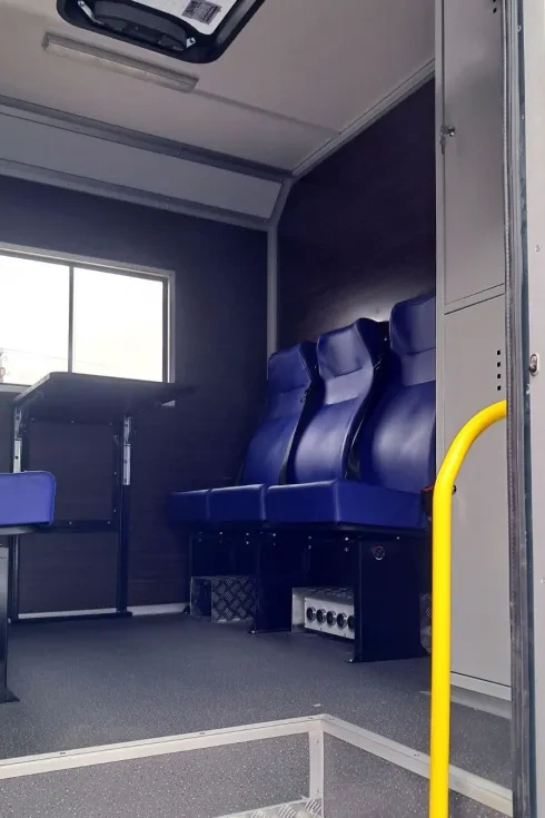 Первый – пассажирский, оборудован шестью креслами с ремнями безопасности. В салоне имеются вентиляционный люк, автономный отопитель, переговорное устройство с кабиной водителя.