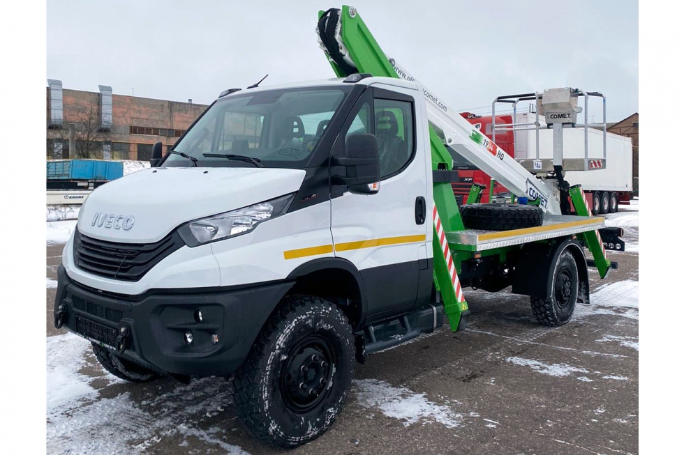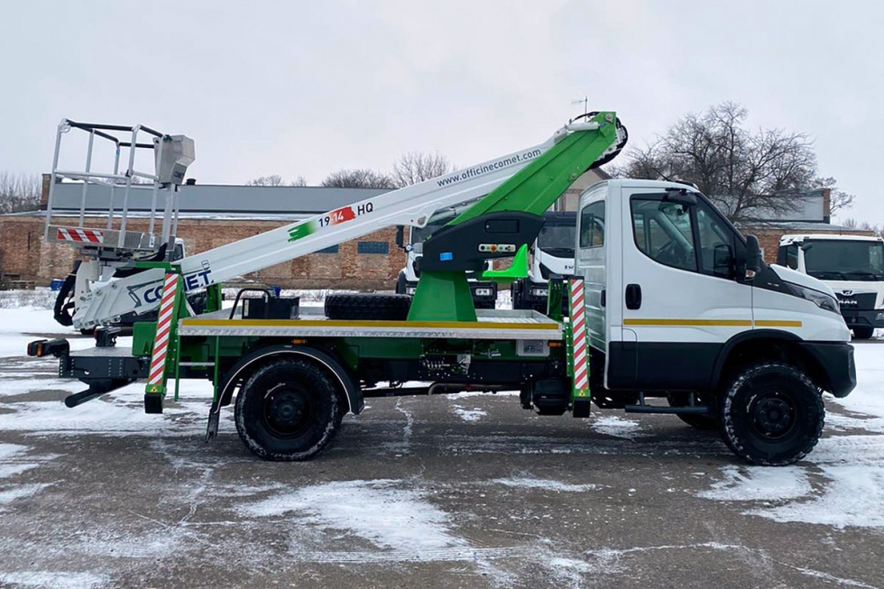 Для восстановления критической инфраструктуры Харьковской области на днях были отправлены пять новеньких автовышек итальянской марки Comet. Особенность этой партии в том, что впервые 18-метровую модель Comet 19-2-14 HQ установили на полноприводное шасси IVECO Daily 50S18H. Сборка была произведена на Заводе спецтехники «Техкомплект».