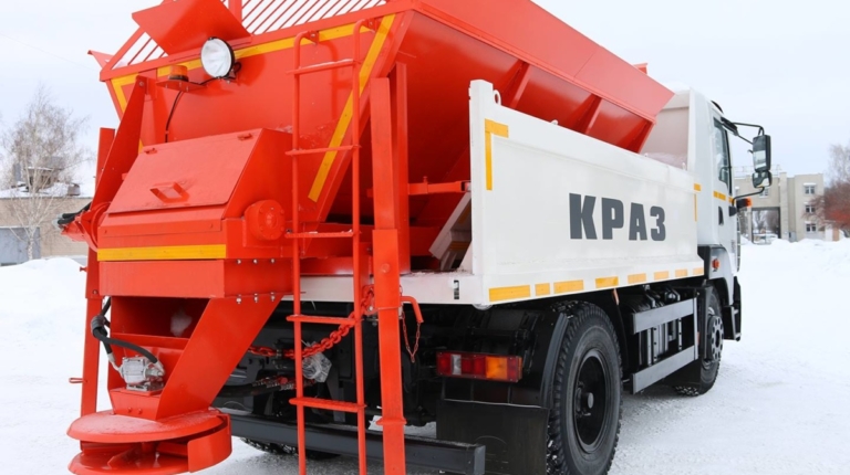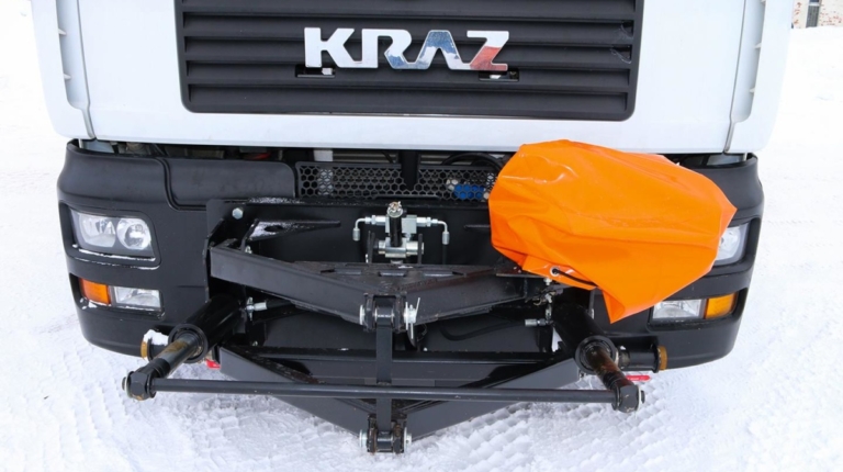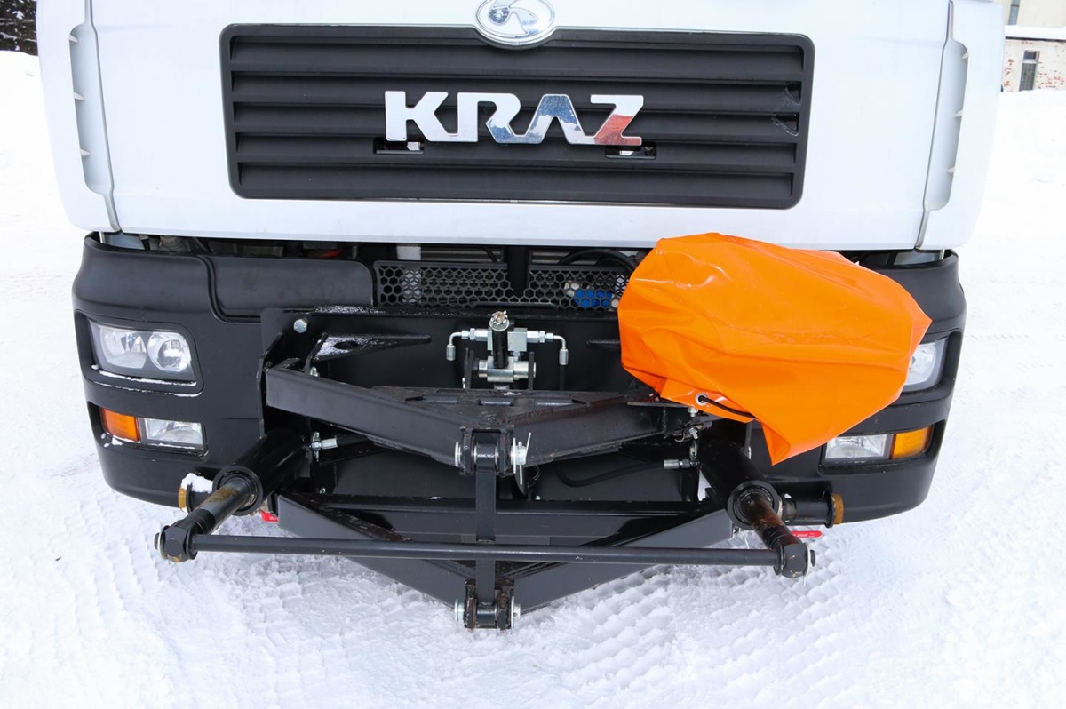 Навесное оборудование, изготовленное ЧПО «Спецбудмаш» (г. Бровары), включает пескоразбрасывающий бункер объемом 6,2 кубометра с максимальной шириной рабочей зоны посыпания 12 м. А также восьмикубовую цистерну под антигололедные реагенты и щеточное оборудование для подметания дорог. Установлен и снегоуборочный отвал шириной 3 м.