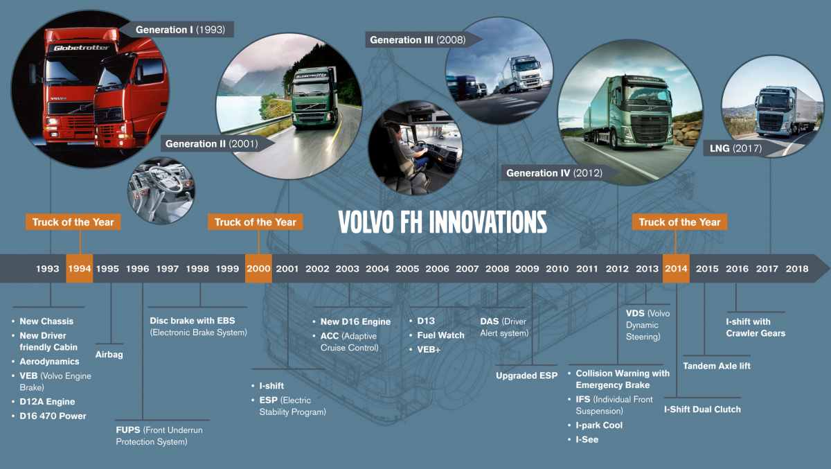Volvo FH — единственная модель, трижды завоевавшая титул грузового автомобиля года (в 1994, 2000 и 2014 годах). Всего было продано около одного миллиона экземпляров Volvo FH. Выпустив в 1993 году этот грузовой автомобиль, Volvo Trucks объявила о том, что будущее наступило. Четверть века спустя компания все еще непоколебимо верит, что Volvo FH — это грузовой автомобиль будущего.