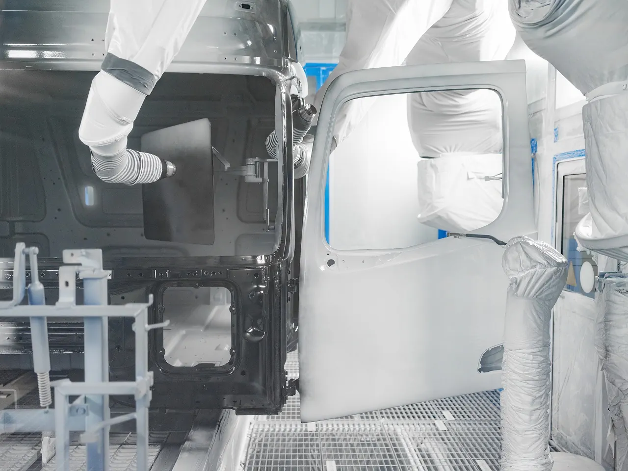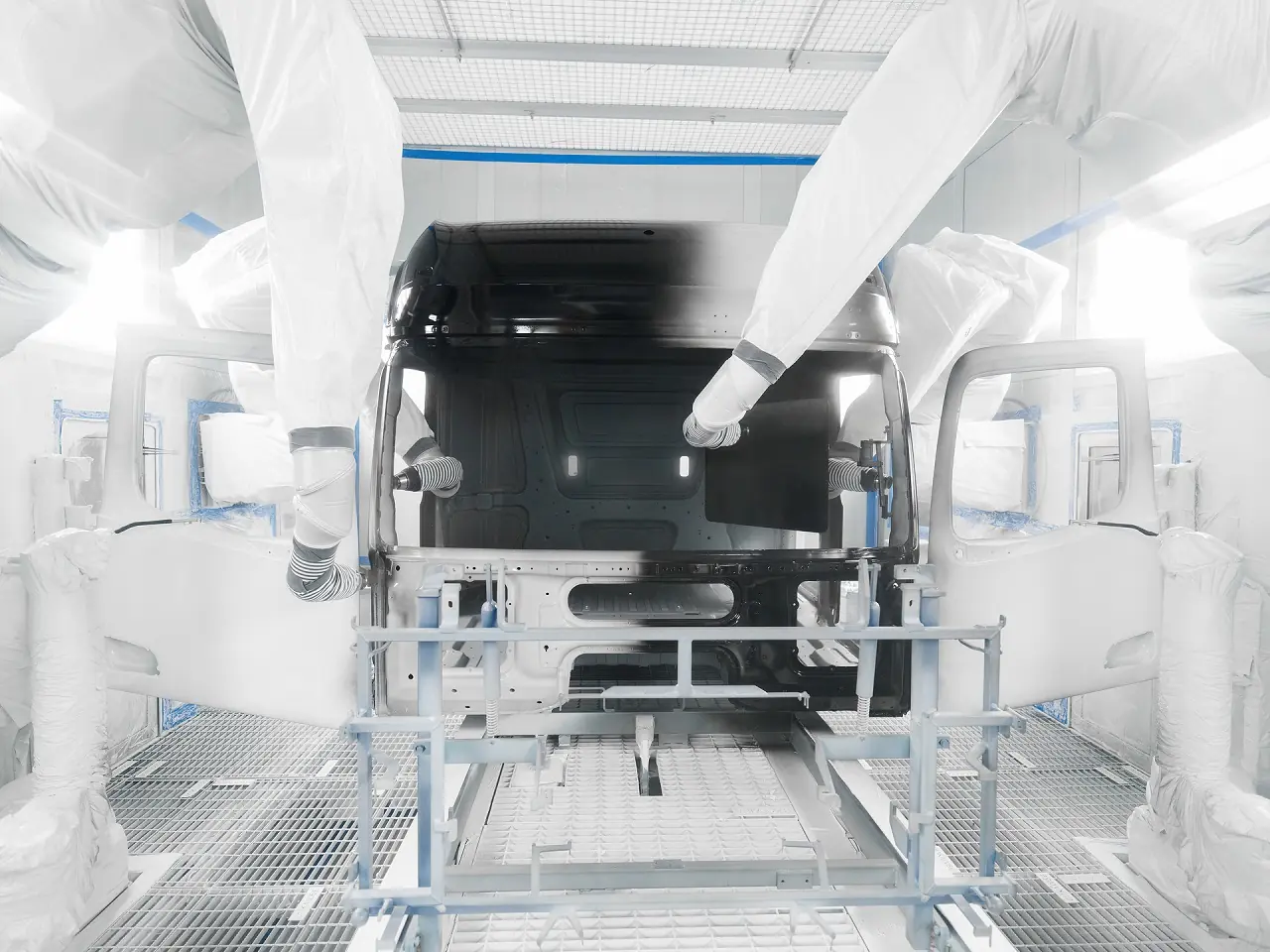 На заводе Mercedes-Benz Trucks в Верте началось внедрения передовой технологии окраски кабин, которая на 40% экономичнее и позволяет существенно снизить выбросы СО2. Основой нового процесса являются так называемые сверхтвердые лакокрасочные материалы, которые можно наносить методом «мокрый по мокрому». В итоге отпадает необходимость промежуточной сушки между нанесением слоев. Теперь после грунтования окраску можно проводить в одном боксе. Более того, процесс требует меньшее количество лакокрасочных материалов.