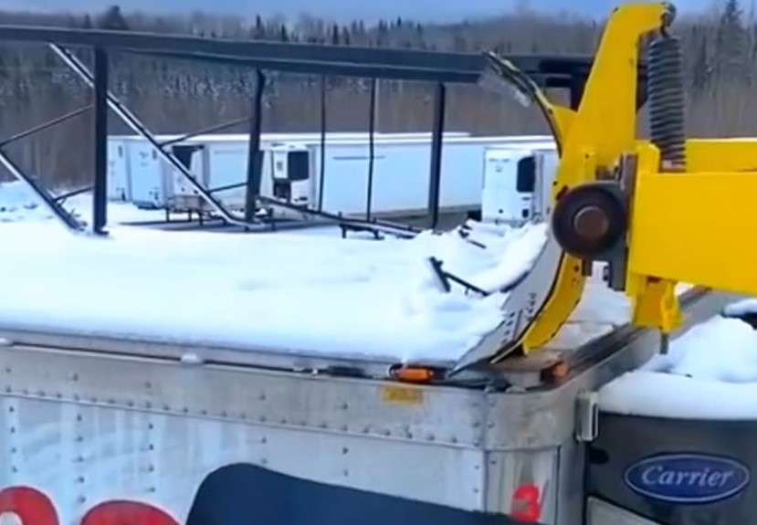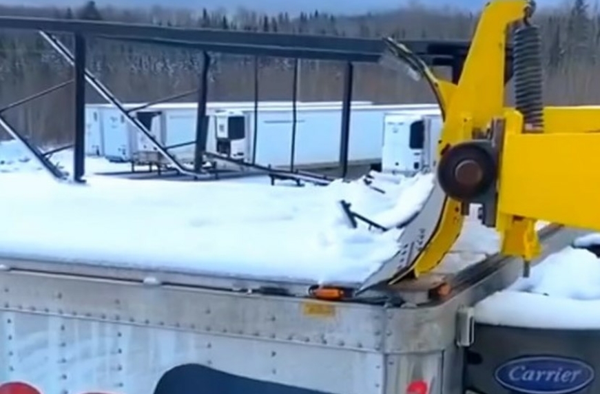 Обильные снегопады приносят немало хлопот водителям. И если легковые автомобили можно расчистить довольно быстро, то вот с грузовиками, особенно с дальнобойными автопоездами ситуация особая. На крышах таких фур нередки скапливается не один кубометр снега, который во время движения может привести к серьезной аварии через падение на едущие сзади авто. Убрать снег с крыши вручную задача нелегкая, ведь для этого туда нужно как-то залезть и, понятное дело, иметь еще и хорошую лопату.