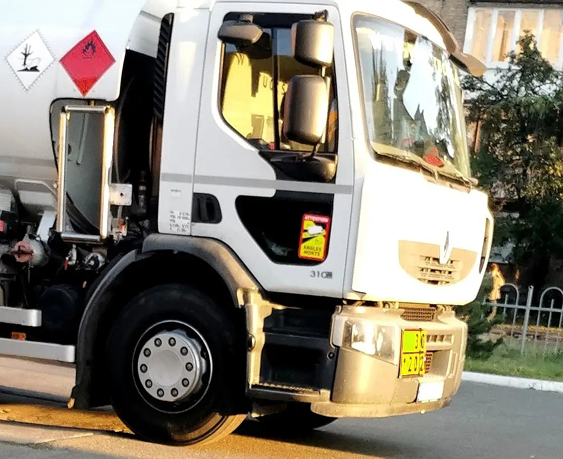 Так, на представленном топливозаправщике Renault Premium Distribution 310, работающем в одной из украинской сети АЗС, водитель прикрепил наклейку на правую дверь, в нижнем правом углу. Казалось бы, это ее законное место. Однако в данном случае в этой части двери установлено дополнительное окно для лучшего обзора около колесного пространства, в частности тротуара.