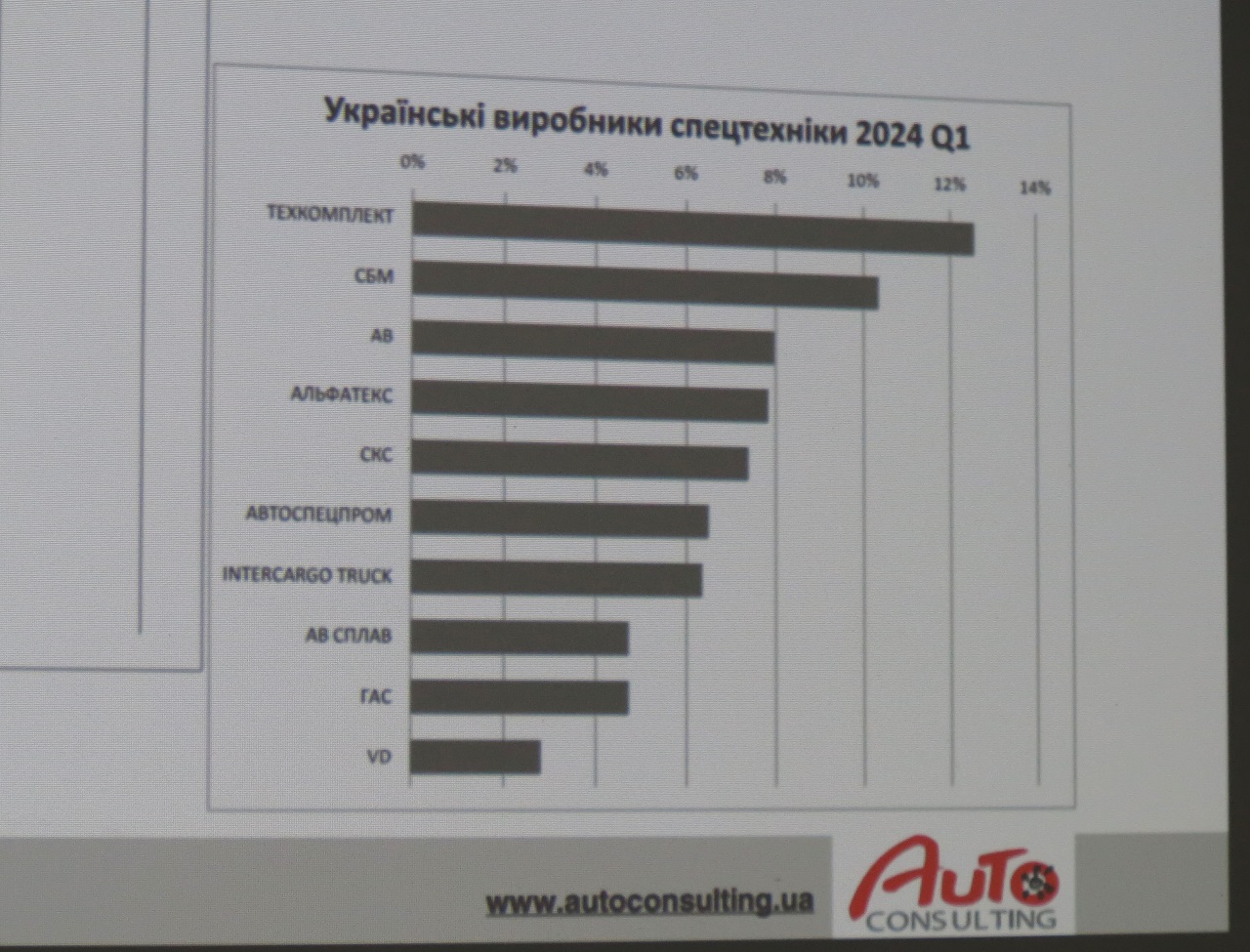 Сегодня лучше всего дела обстоят у производителей автобусов. Также активно развивается сборка грузовиков такими отечественными предприятиями как «Альфатекс», «Будшляхмаш» и Черкасский автозавод.