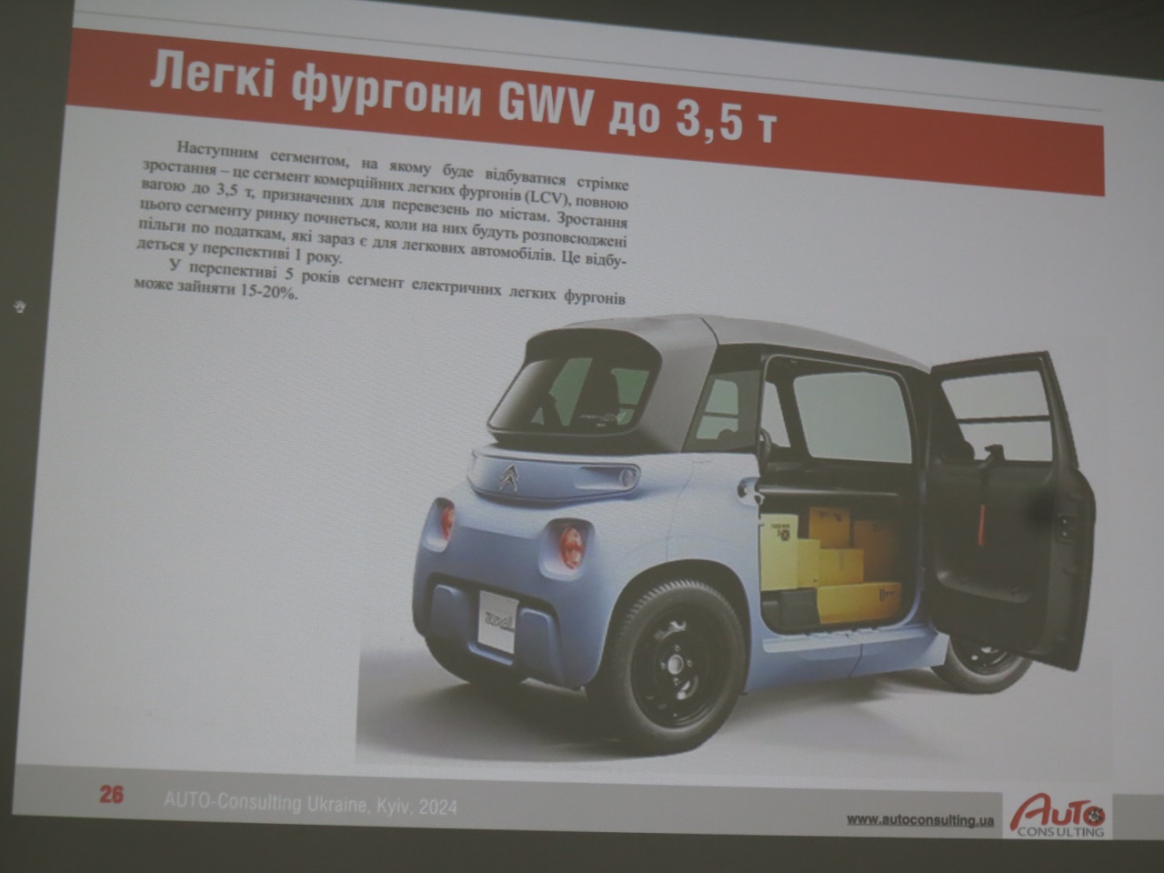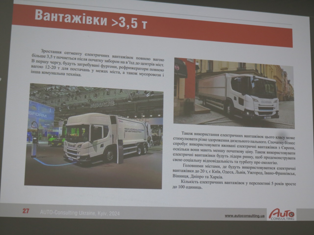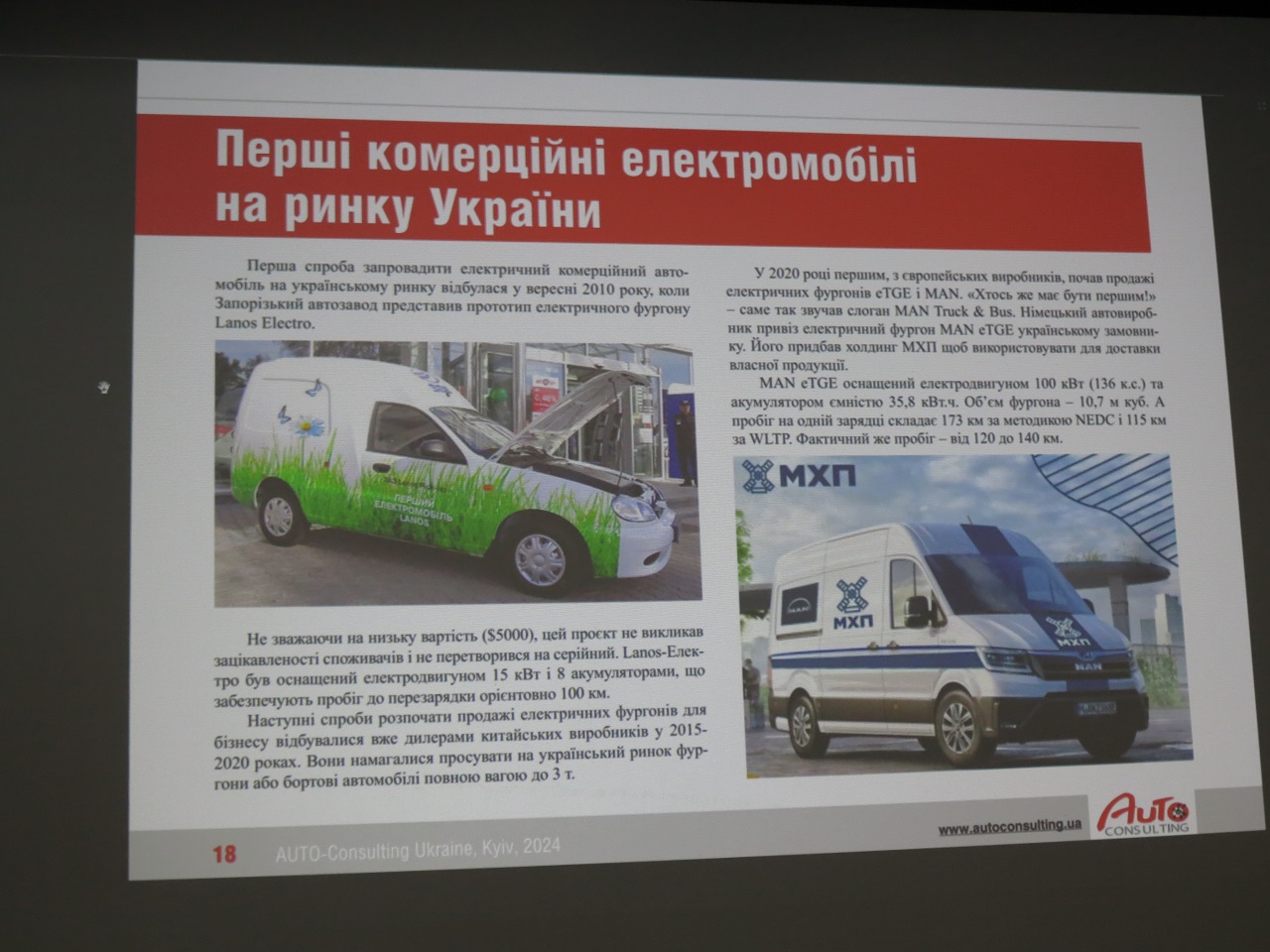 Отдельной темой на конференции стал анализ украинского рынка электромобилей, в том числе и развозных. Первые коммерческие продажи электромобилей в Украине стартовали еще 27 мая 2011 года. С учетом данных за первый квартал 2024 года их число составило 95 744 ед. Из этого количества на легкие развозные электромобили пришлось 3228 ед., на грузовики среднего и тяжелого классов – только 35 ед., а на электробусы – и вовсе всего лишь 5 ед.