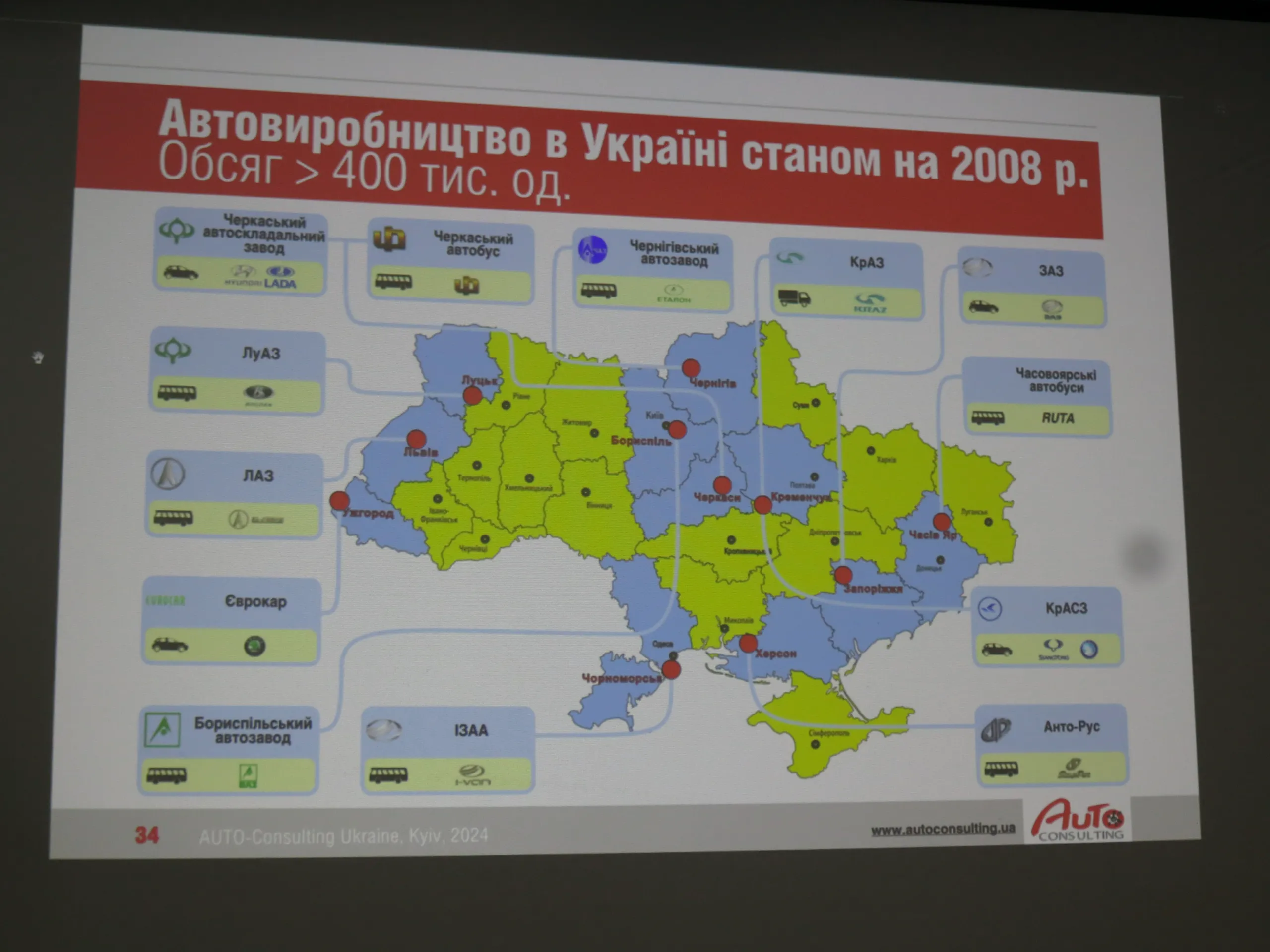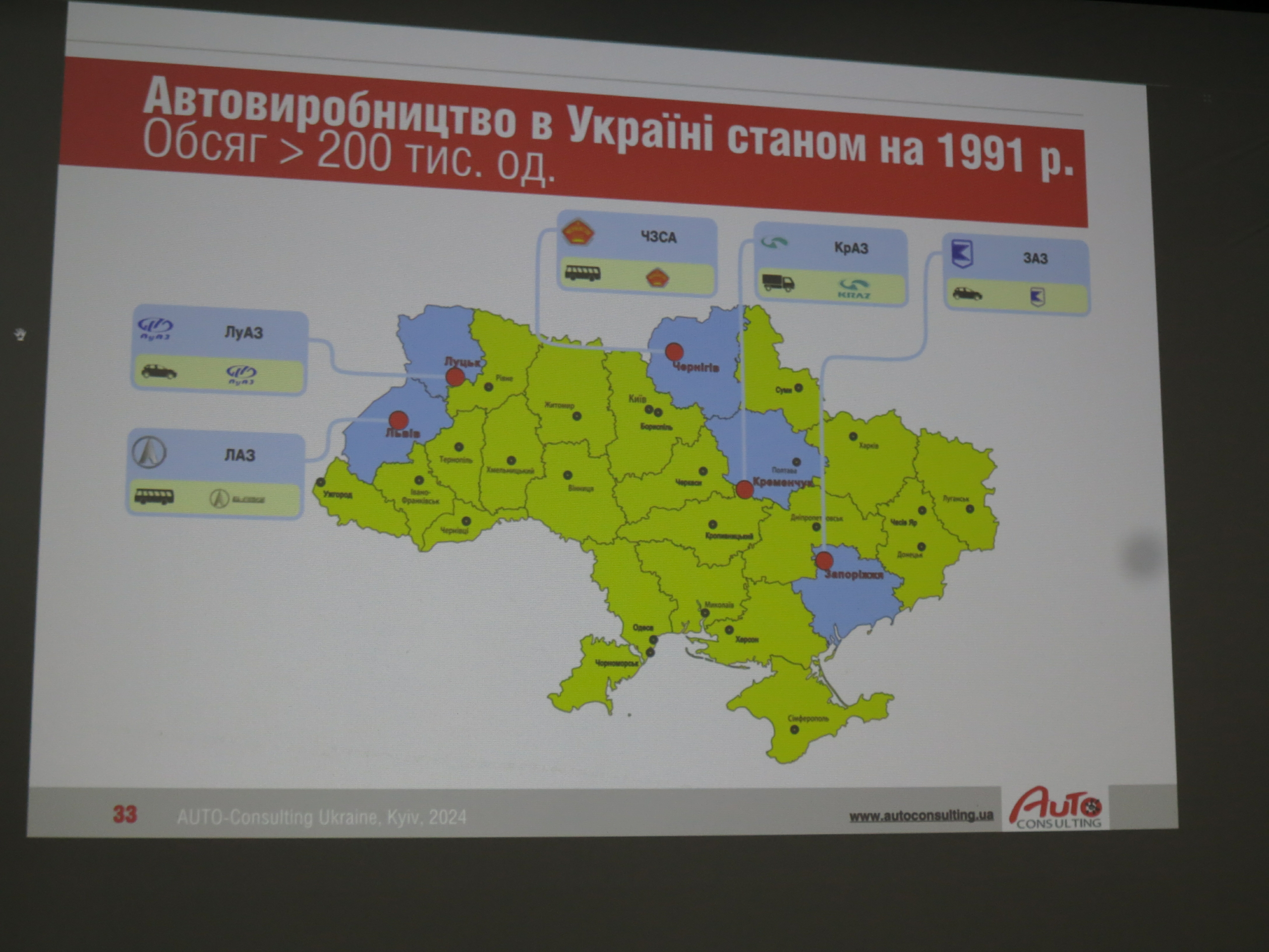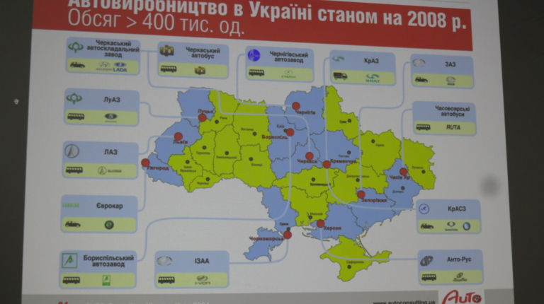 Была рассмотрена и тема развития отечественного автопрома. Отметим, что в 1991 году в Украине произвели порядка 200 тыс. автомобилей и по этому показателю Украина вошла в мировой ТОП-20. В 2008 году выпуск достиг 400 тыс. авто в год. Правда только 150 тыс. ед. были изготовлены по полному циклу, а остальные – путем отверточной сборки.