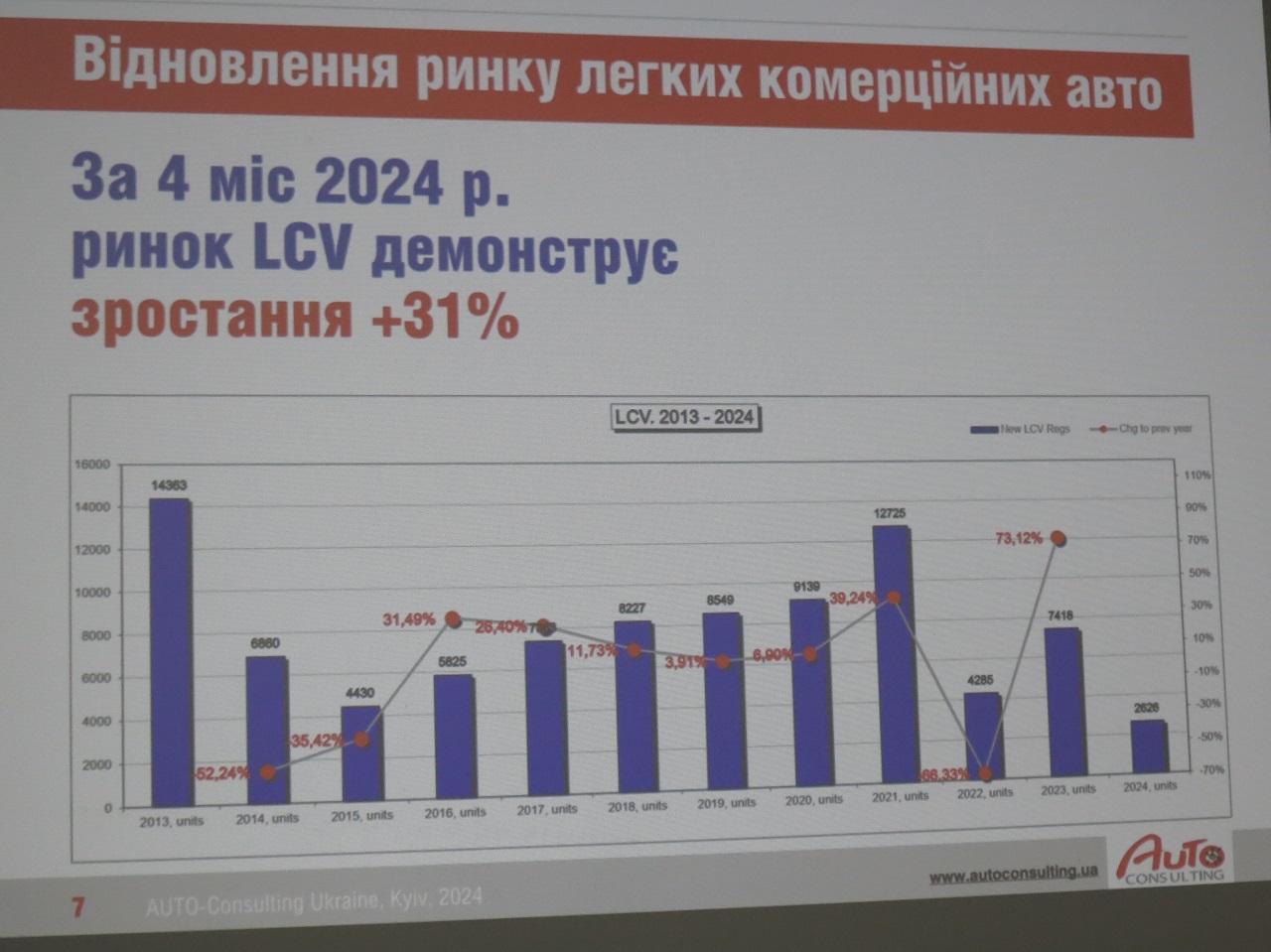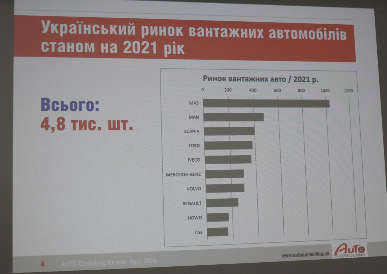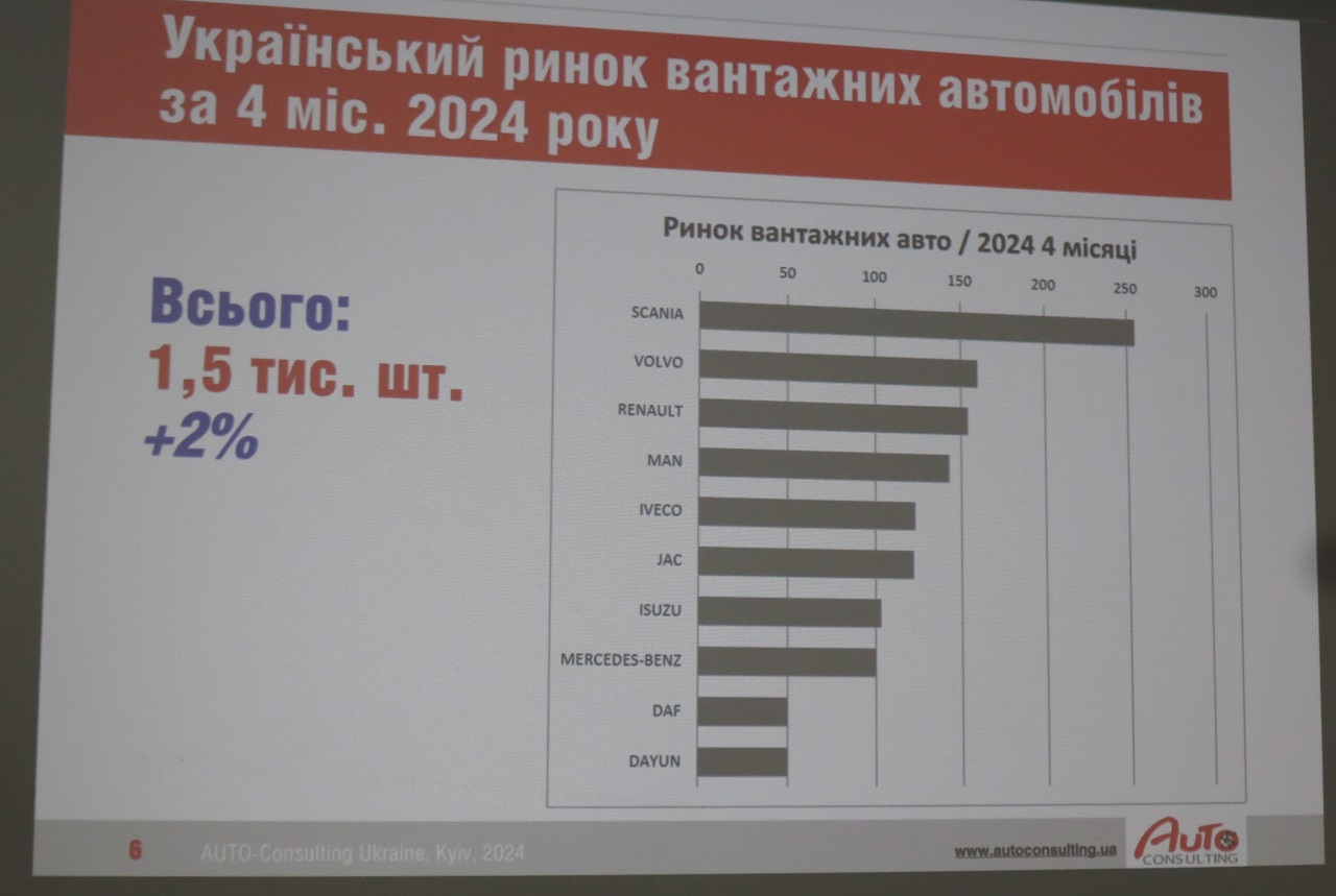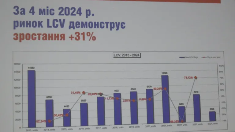 За первые 4 месяца этого года продажи новых грузовиков составили 1,5 тыс. ед., что на 2% больше, чем за аналогичный период прошлого года. В сегменте легких коммерческих автомобилей (LCV) полной массой до 3,5 т за тот же период наметился рост в 31%.