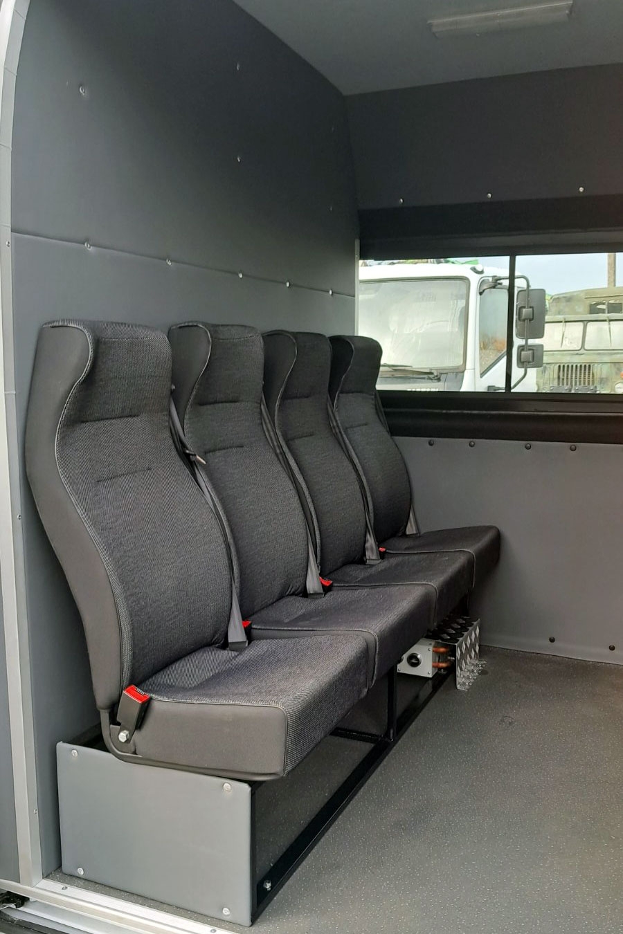 За основу был взят фургон Fiat Ducato в длиннобазном исполнении Maxi L3H2. Его грузовый отсек полезным объемом 13 кубометров был разделен на две части. Здесь обустроили пассажирское отделение с четырьмя комфортабельными креслами. Было установлено окно слева по борту, застеклена сдвижная дверь. Таким образом машина может перевозить до семи человек. При этом осталось достаточно место и для перевозки различного оборудования в грузовом отсеке.