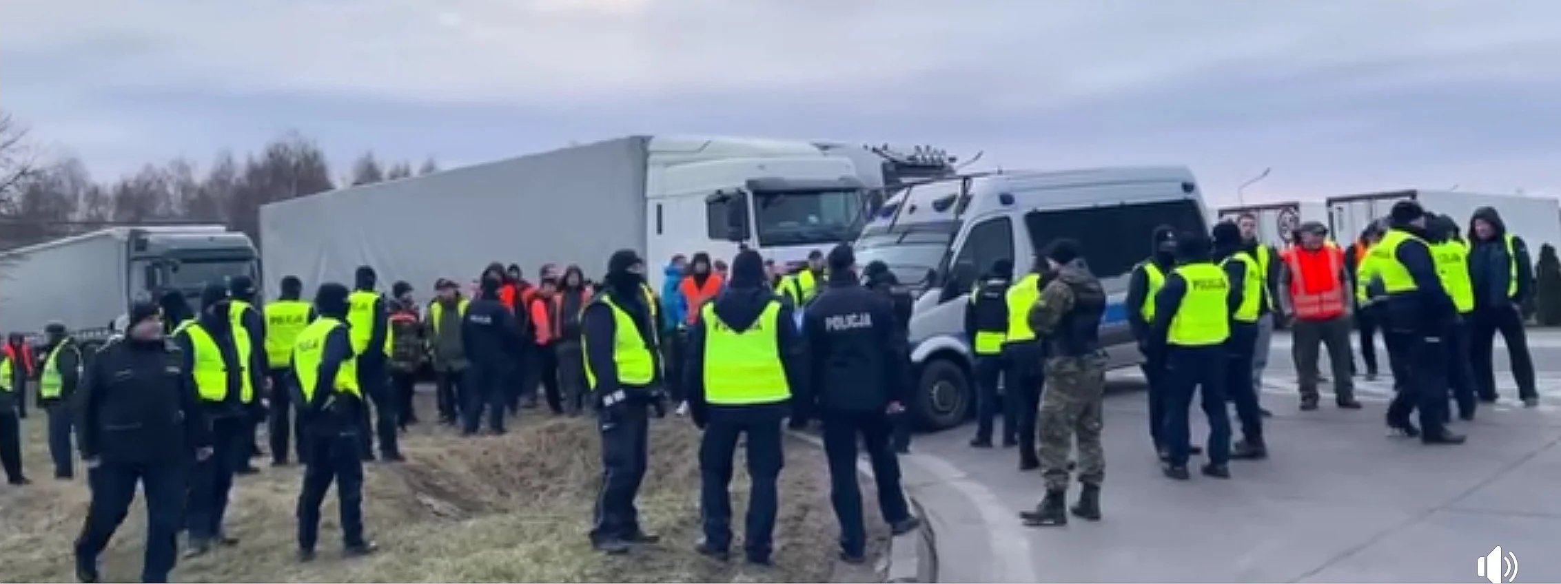 На польской границе местные и украинские активисты блокируют колонну российских и белорусских фур, которые направляются из стран Западной Европы на территорию агрессора. Соответствующее видео опубликовала Валерия Журбас на своей страничке в Фейсбук. На нем видно много добровольцев, которые перегородили движение далеко недружественным автопоездам. Рядом также стоят польские полицейские и соответствующий спецтранспорт.