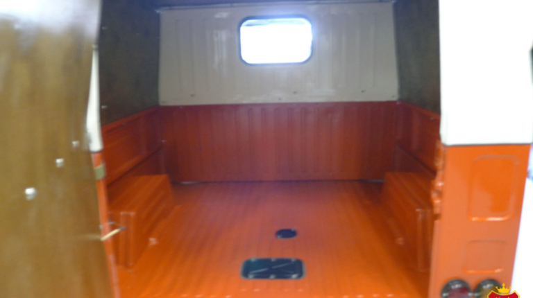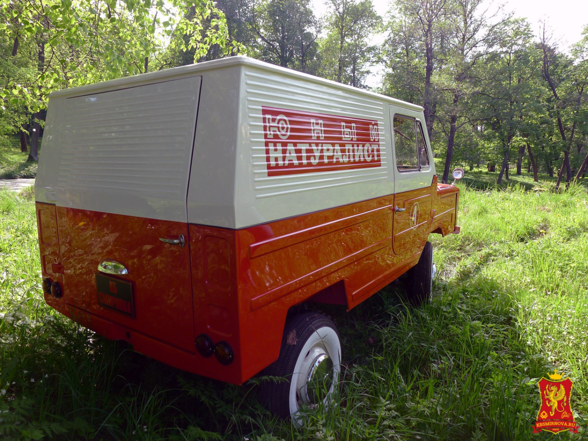 Машина теперь выглядит как новая – восстановлен даже родной двухцветный окрас ,который можно видеть по сохранившемся историческим фотографиям. Фургон имеет снаряженную массу 820 кг и может перевозить 350-400 кг груза. Кабина водителя отделена от грузового отсека металлической перегородкой с небольшим окошком. Сзади установлена широкая распашная дверь.