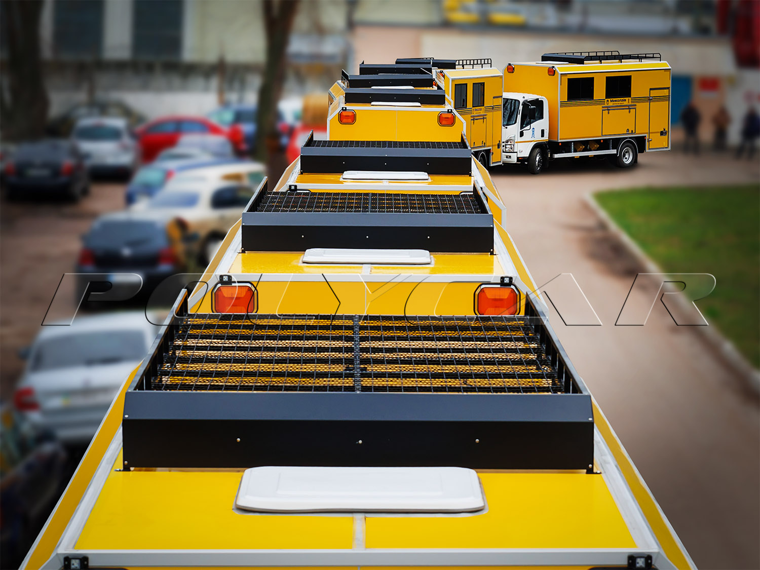 Кузов-фургон каждого автомобиля разделена на два отсека. Первый, пассажирский, предназначен для перевозки ремонтной бригады. Здесь комфортабельные сиденья с ремнями безопасности, рундуки, столик, автономный отопитель, а также шкаф для одежды с просушкой. Имеется и переговорное устройство с кабиной водителя.