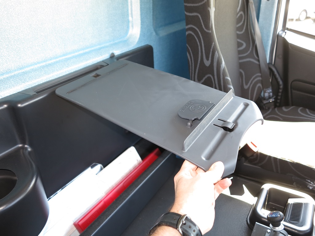 Пневматическую подвеску имеет удобное водительское кресло ISRI. Оно регулируется по наклону подушки, по высоте, по жесткости и по углу наклона кресла в целом, а в качестве опции может быть обогреваемым.