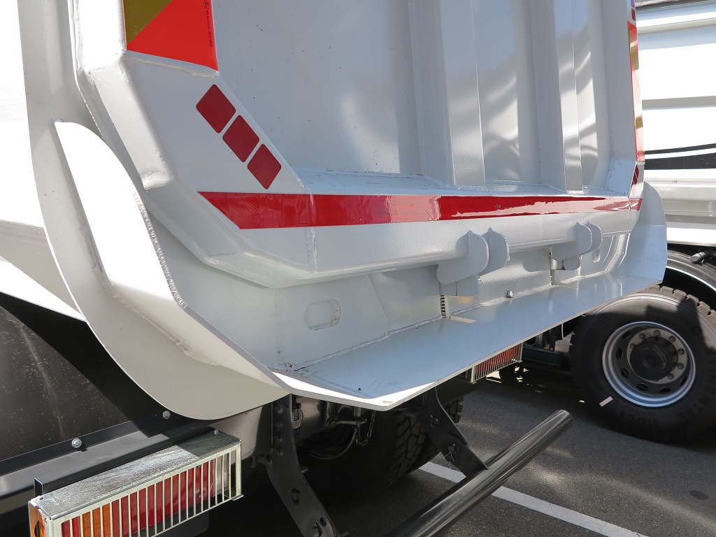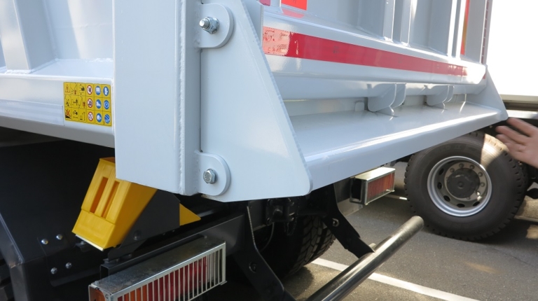 В качестве опции предлагается термостойкий тент, который особенно удобен для сохранения температуры перевозимого асфальта. Впрочем, тент сегодня обязателен и для перевозки любых сыпучих материалов. Интересно, что сдвигать его можно находясь на земле, вращая рукоятку.