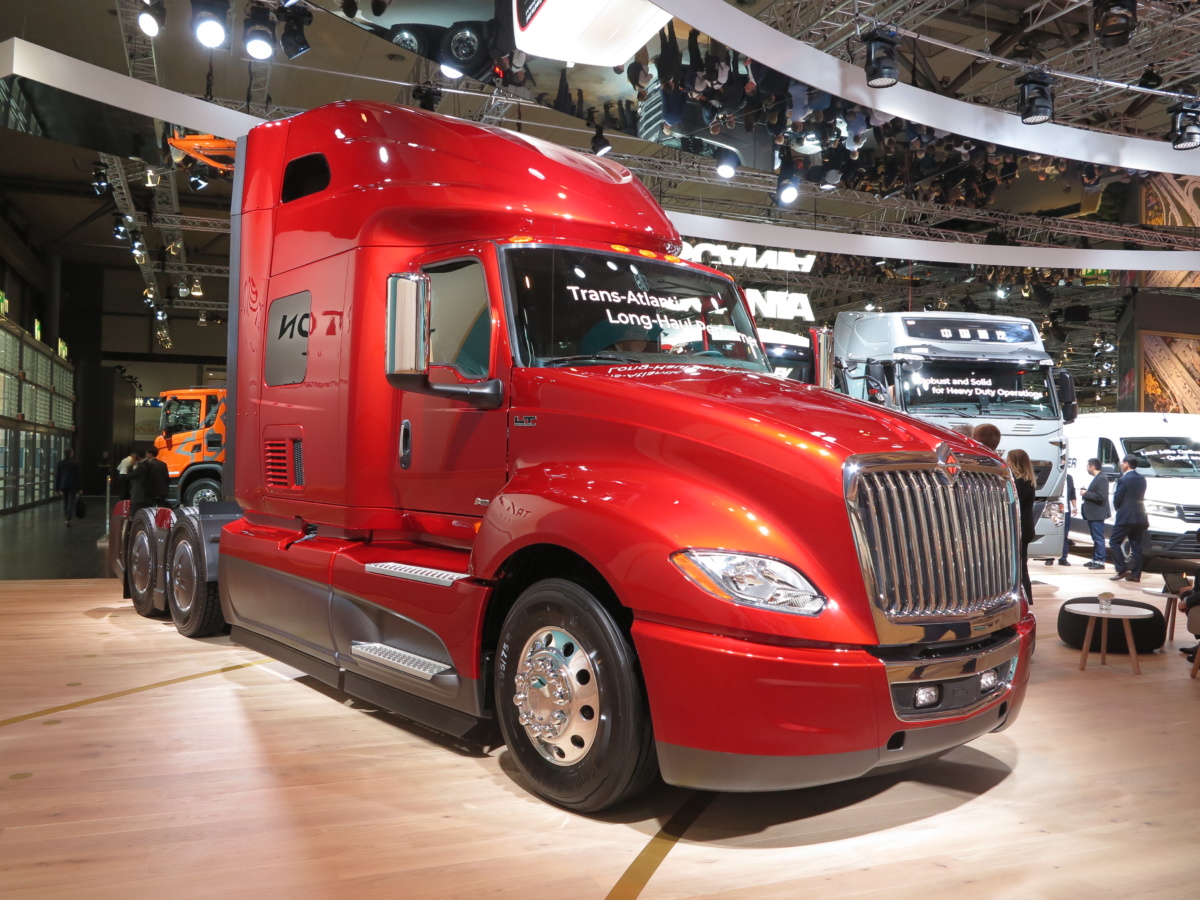 Traton AG с недавнего времени также владеет почти 17% акций Navistar – крупного производителя грузовиков и автобусов из США. Оказывается, Traton AG будет поставлять силовые агрегаты для заокеанского партнера, что позволит последнему сэкономить за пять лет до 500 млн долларов. На стенде в Ганновере был показан один и эффектных продуктов Navistar – магистральный капотный тягач International семейства LT, с традиционным обилием хрома, пароходными трубами и огромным спальником.