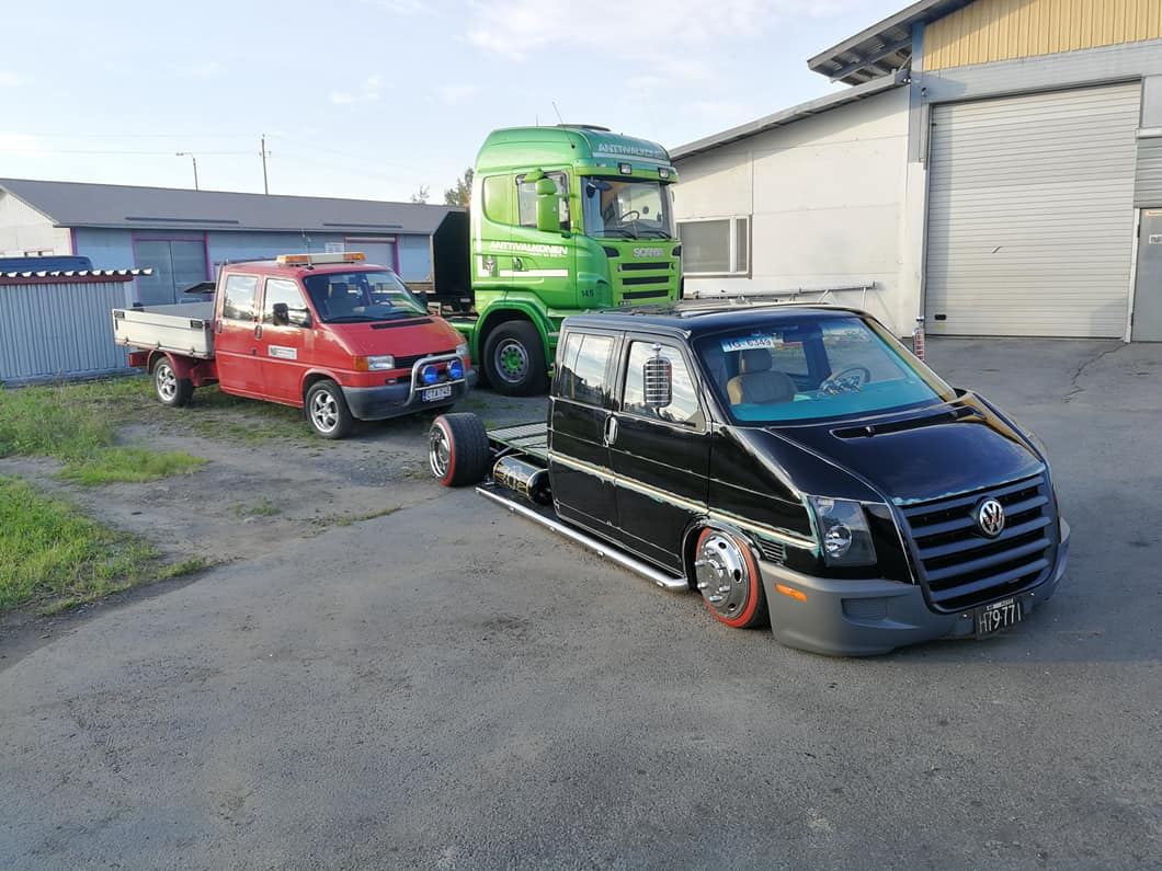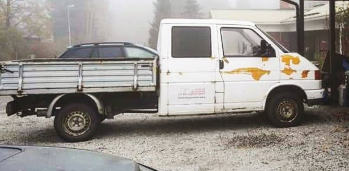Объединить можно не только компании, но и разные коммерческие автомобили. Так и решил финский тюнинговых дел мастер Marko Vuolle из города Сейняйоки. За основу для новой машины Craftporter был взят повидавший свое бортовой грузовичок Volkswagen Transporter T4 c двухрядной кабиной.