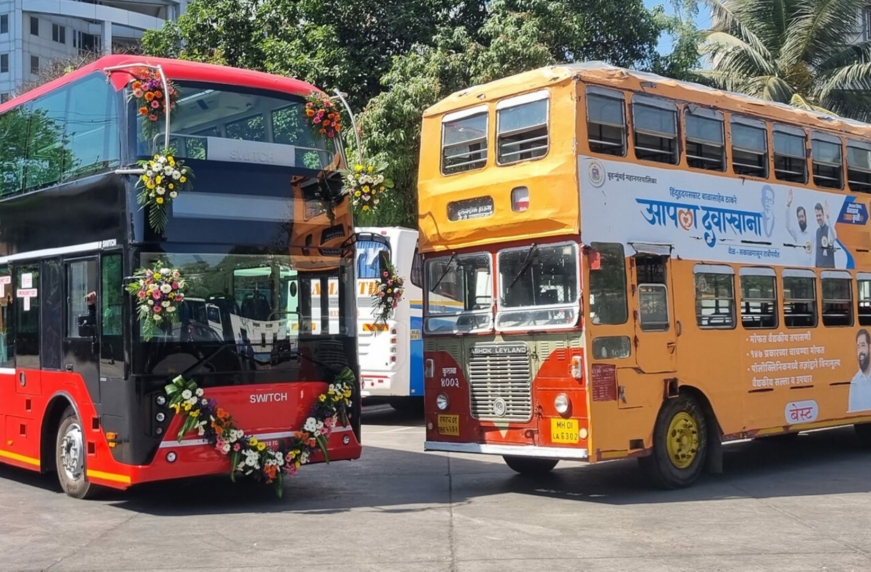 Уникальные двухэтажные электробусы выехали на улицы Мумбаи