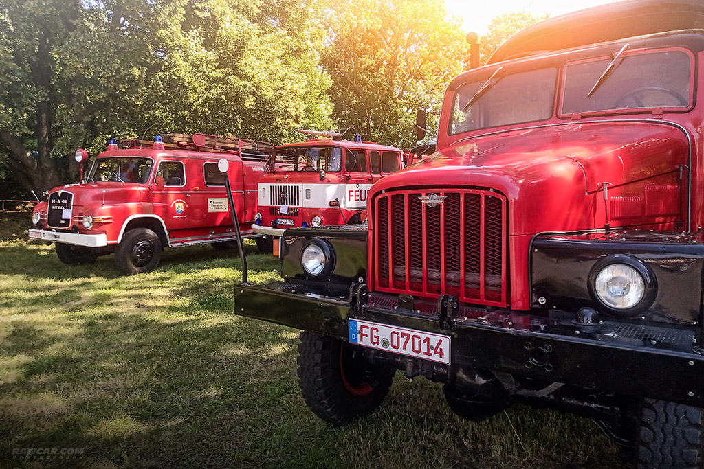 Спецтехнику представляли две пожарные автоцистерны. Одна из них была на шасси IFA W50L c двухрядной кабиной. Вторая же – на базе капотного грузовика MAN 450H образца 1965 года. Шасси последнего рассчитано на полную массу 11 600 кг и оснащено 7-литровым дизелем в 150 л. с.