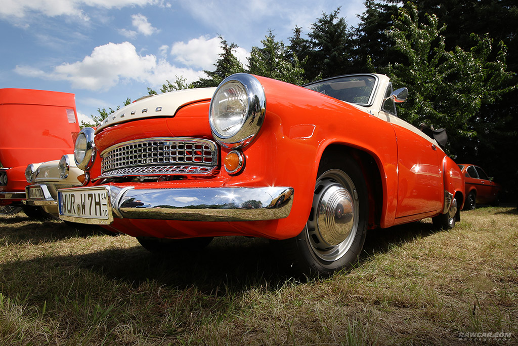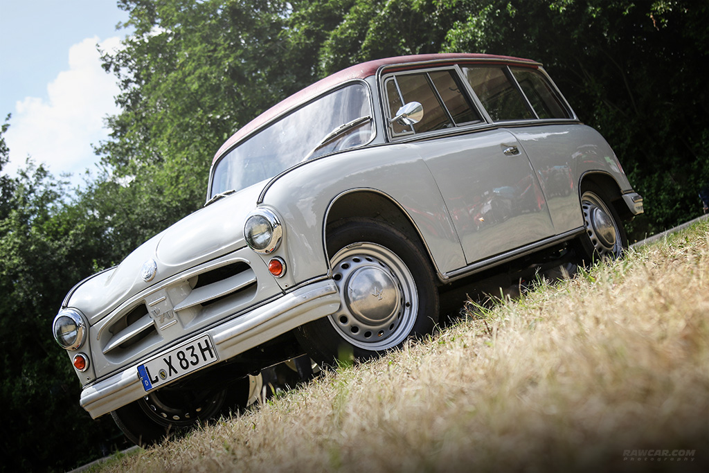 Самым почтенным по возрасту экспонатом была малолитражка F8. Такую выпускали еще с 1939 года на заводе фирмы DKW в Цвиккау. Но после войны предприятие продолжало их выпуск некоторое время. Переднеприводная машина имела двухтактный мотор (2 цил., 700 см куб., 18 л. с.), который разгонял ее до 85 км/ч. После войны завод был национализирован и автомобиль выпускался под маркой IFA.