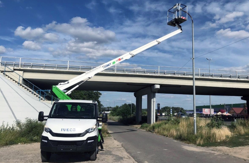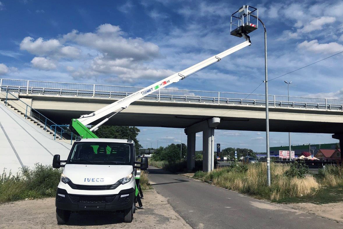 Для восстановления инфраструктуры в Херсонкой области сегодня привлекается самая разнообразная техника, в том числе и автогидроподъемники. На днях для этой цели сюда ушла самая популярная автовышка Завода спецтехники «Техкомплект» – модель 19-2-14 HQ итальянской марки Comet. Она имеет рабочую высоту подъема 18 м и максимальный горизонтальный вылет 14 м. Корзина грузоподъемностью 250 кг может поворачиваться на 90 град. влево и вправо.