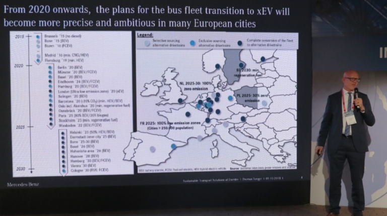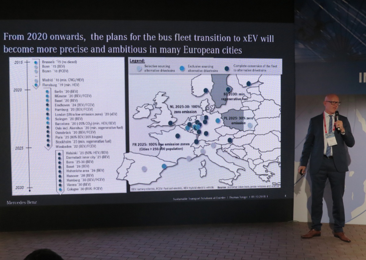 Еще одной важной темой презентации Daimler Buses на саммите в Киеве стали электробусы. С 2020 года многие европейские города начинают активный переход на автобусы с нулевым вредным выбросом в атмосферу. По прогнозам к 2030 году 70% всех продаваемых городских автобусов будут иметь нулевой вредный выброс в атмосферу.