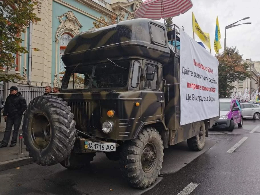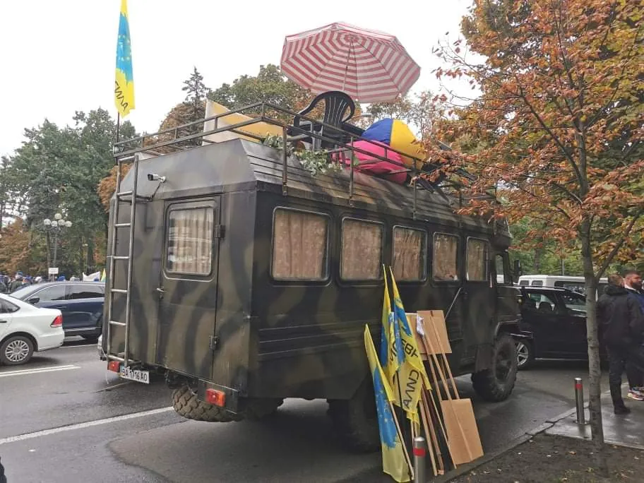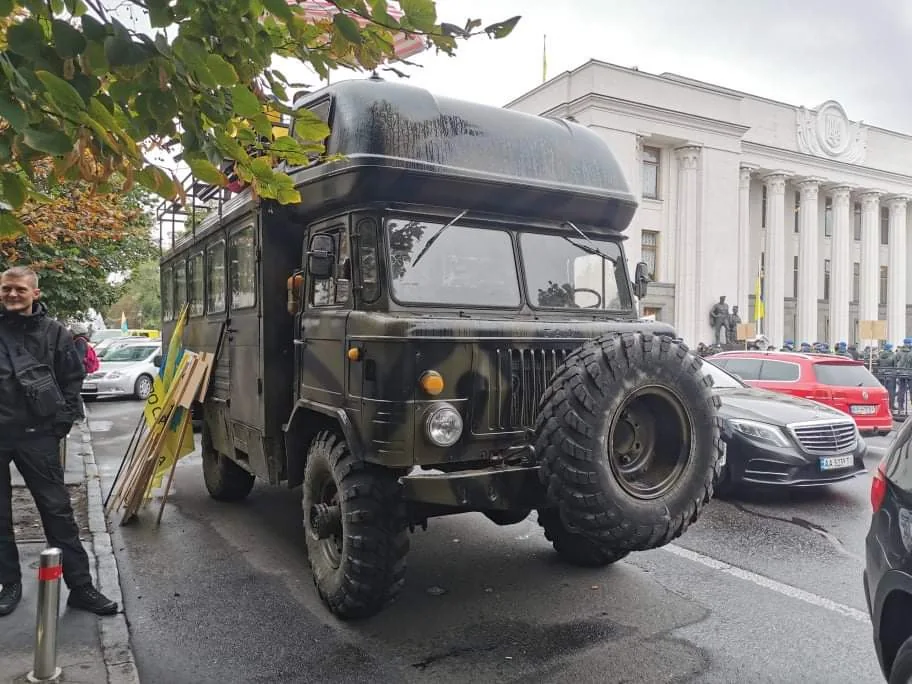Этот, довольно необычный ГАЗ-66 принимал участие в акции протеста владельцев автомобилей на еврономерах, которая проходила 23 сентября под стенами Верховной Рады. Подобные автомобили медицинской службы на базе ГАЗ-66 выпускал Ворошиловградский, а позднее Луганский автосборочные завод.