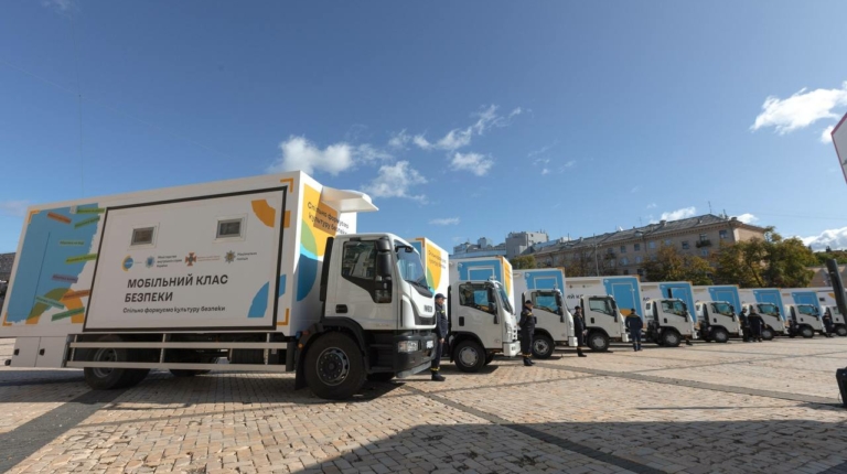 В десять областей Украины на днях было передано 15 специализированных автомобилей в качестве мобильных классов безопасности. Скоро к ним добавятся еще пять. Их задача – ознакомить детей с правилами безопасности и поведением при обнаружении взрывоопасных предметов (мин, неразорвавшихся снарядов, гранат и др.).
