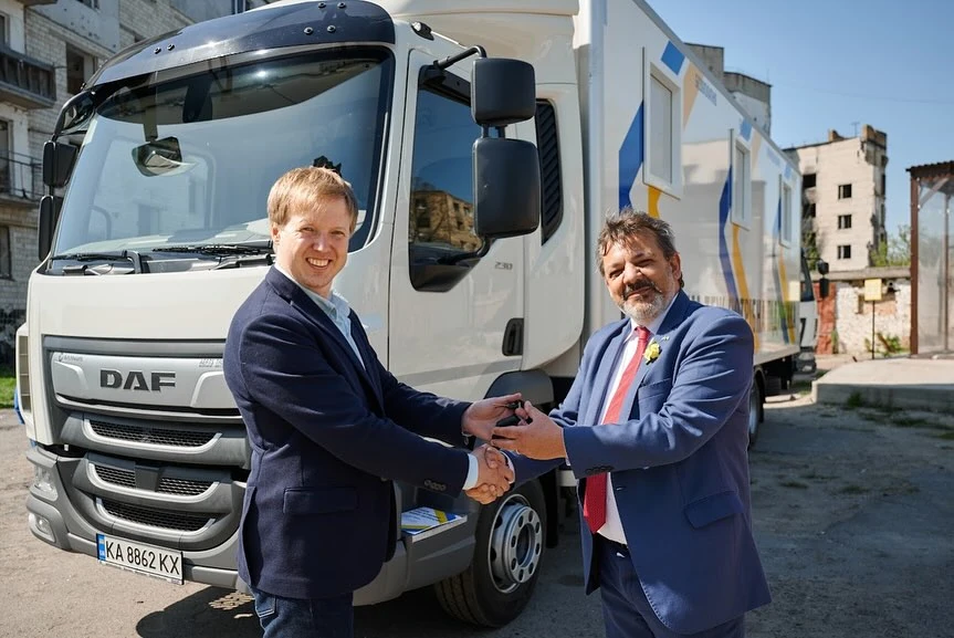 В Бородянке 10 апреля были презентованы мобильные Центры помощи спасенным. Это три грузовых автомобиля DAF LF 230, оборудованные специализированными кузовами голландском компании Dutch Health. Здесь будут предоставляться бесплатная помощь (социальная, психологическая, правовая) населению, пострадавшему от полномасштабной российско-украинской войны, в том числе внутренне перемещенным лицам.