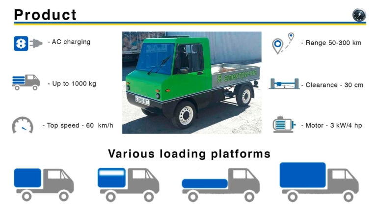Этот компактный электрогрузовик «Курьер» был создан в компании MeGoElectric UA из Николаева. Машина разработана с нуля и позволяет доставлять до 1 тонны груза на 100 км всего за 45 грн. Такова цена на потраченные 10 кВт.ч. Разработчики могут устанавливаться батареи различной емкости, для пробега от 50 до 300 км. Оборудованный двухместной кабиной и бортовой платформой грузовик имеет снаряженную массу всего 450 кг. Длина автомобиля – 4 м, ширина – 1,3 м, высота – 1,8 м.
