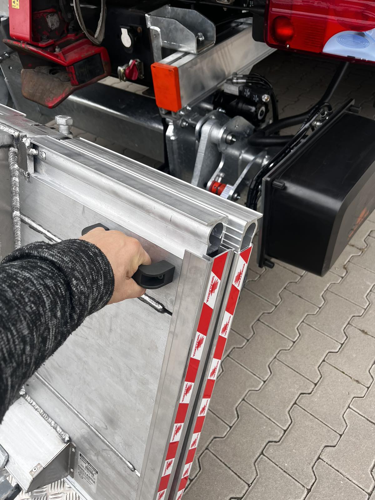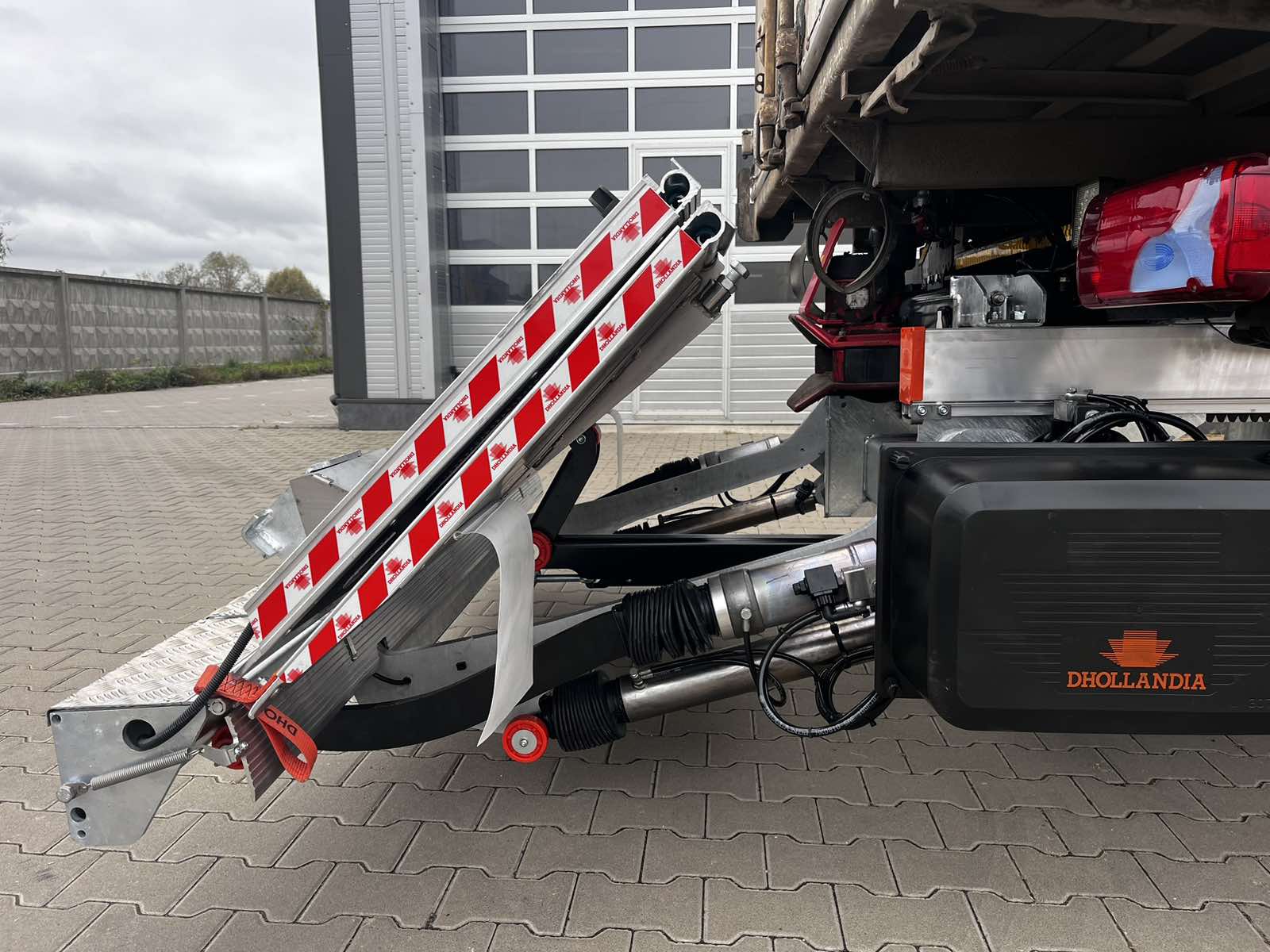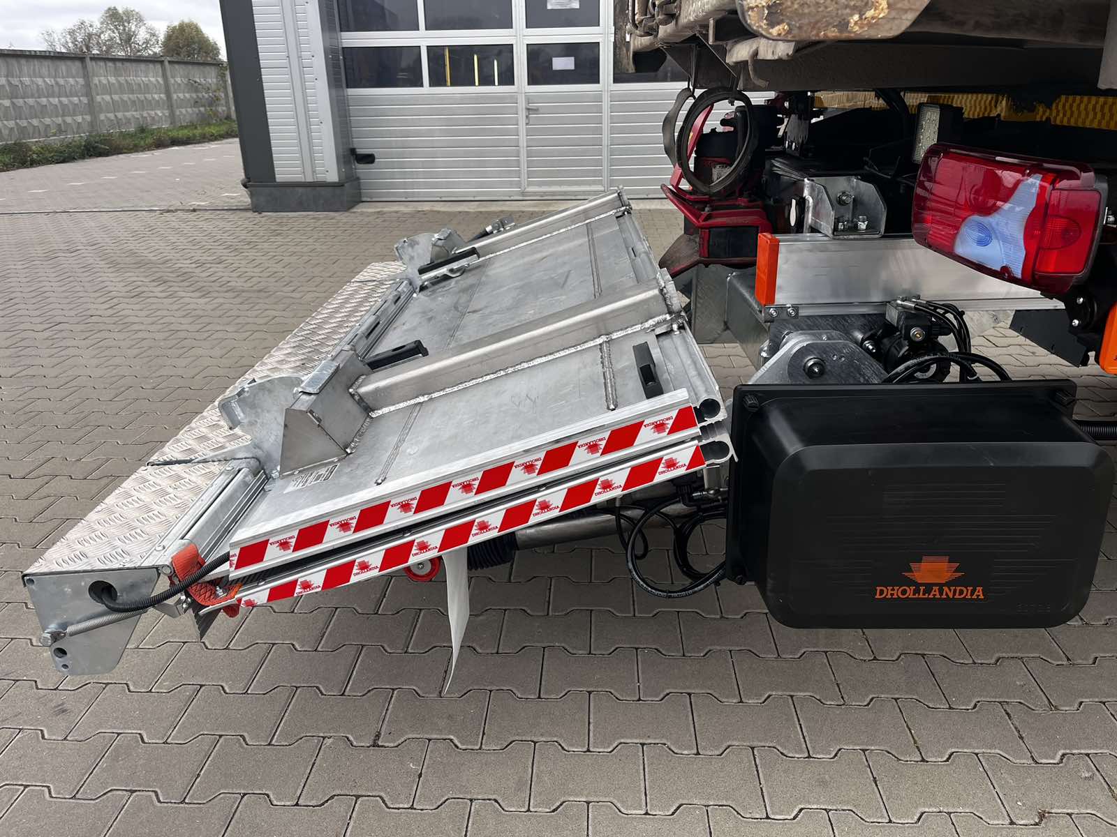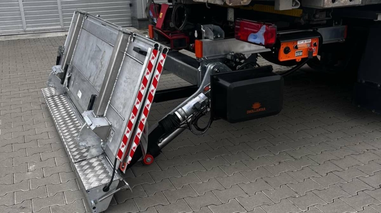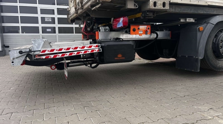На днях компания «Дхолландия Украина» установила первый за свою многолетнюю историю гидролифт на шасси грузовика, предназначенного для работы сменными кузовами типа BDF. Это слайдер двойного складывания Dhollandia – модель DH SO 08, рассчитанная на грузоподъемность 1500 кг (есть также версия и на 2000 кг).