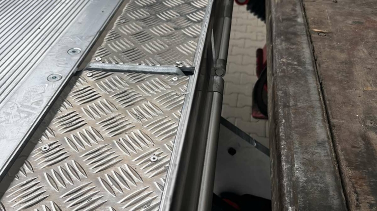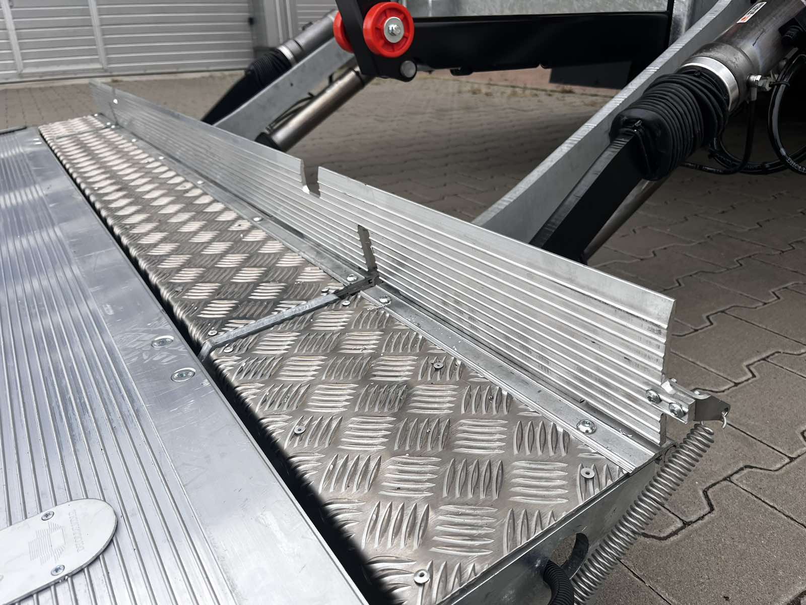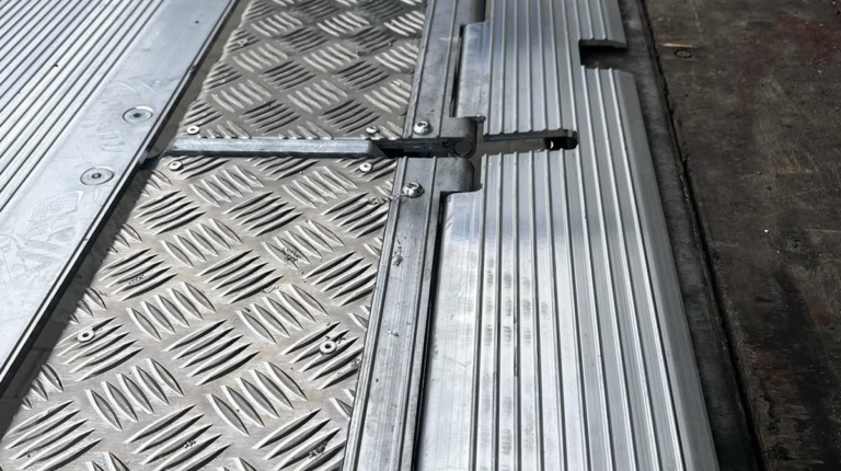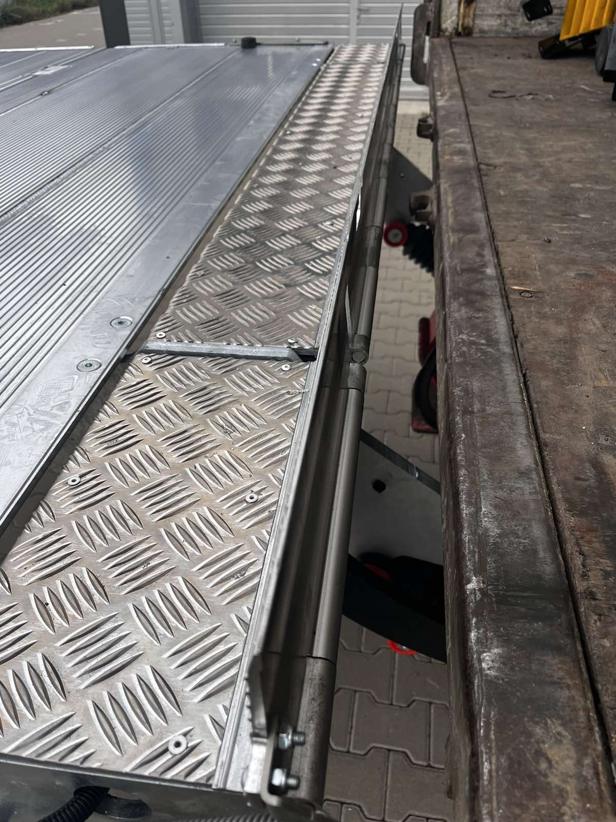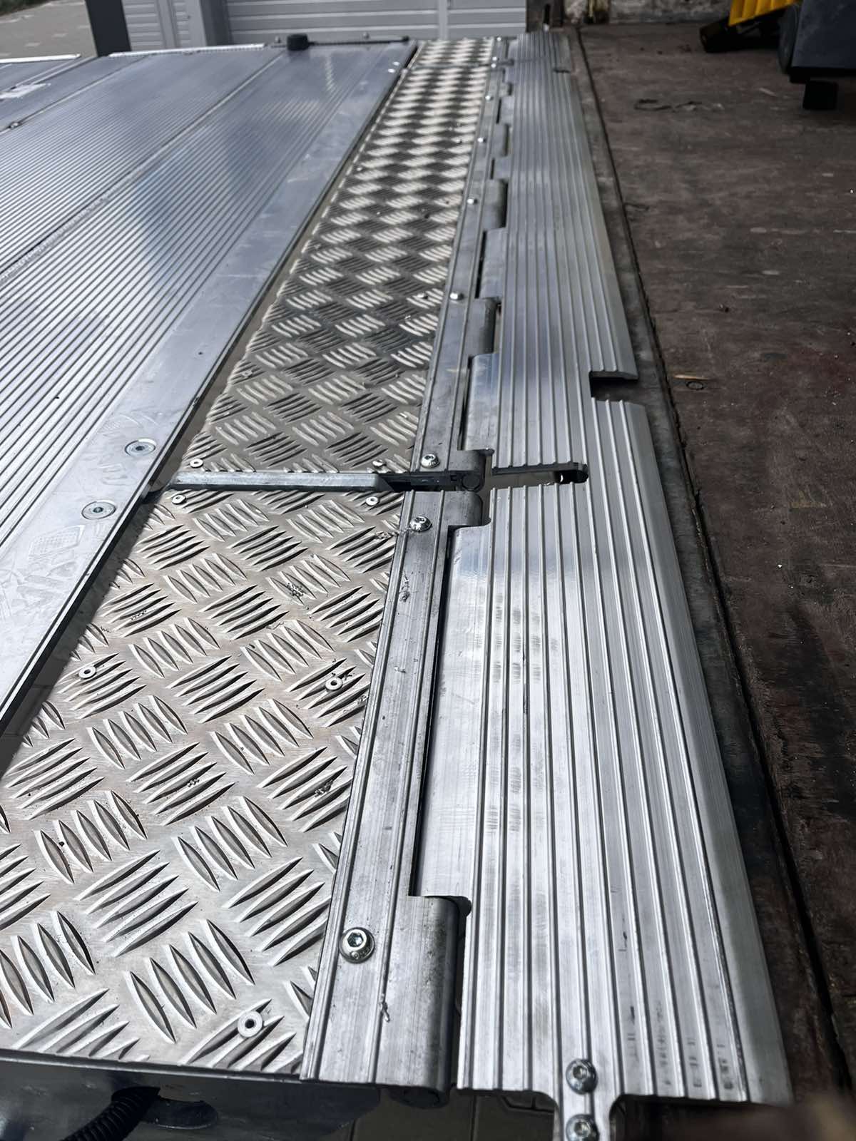 Слайдер оснащен четырьмя гидроцилиндрами и имеет три положения: рабочее, транспортное и промежуточное. В последнем случае он полностью выдвигается для того, чтобы можно было разложить платформу с помощью газового амортизатора. На платформе имеется откидной мостик, который закрывает пространство между ней и полом кузовом (здесь часто размещаются дверные замки).