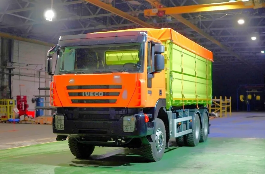 Двигатель используется IVECO Cursor 9 – рабочим объемом 8,7 л и мощностью 390 л. с. Комфортабельная кабина во многом унифицирована с моделью IVECO Stralis. В данном случае она дневного типа, хотя возможен и вариант со спальником.