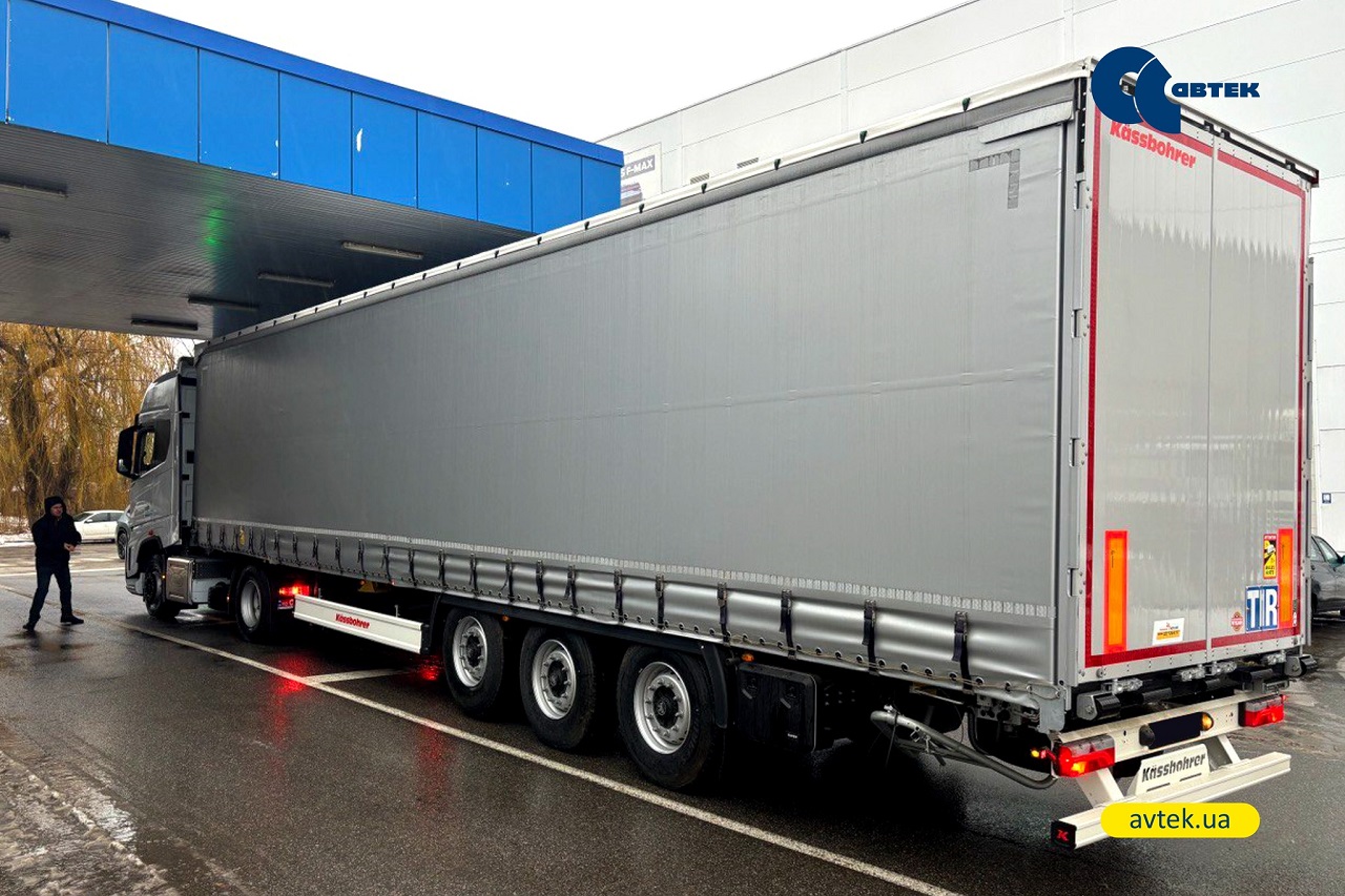 Шторный полуприцеп Kassbohrer имеет полезный объем 90 кубометров. Представленная модель отличается усиленной рамой. В оснащение входят cистемы ABS и EBS.