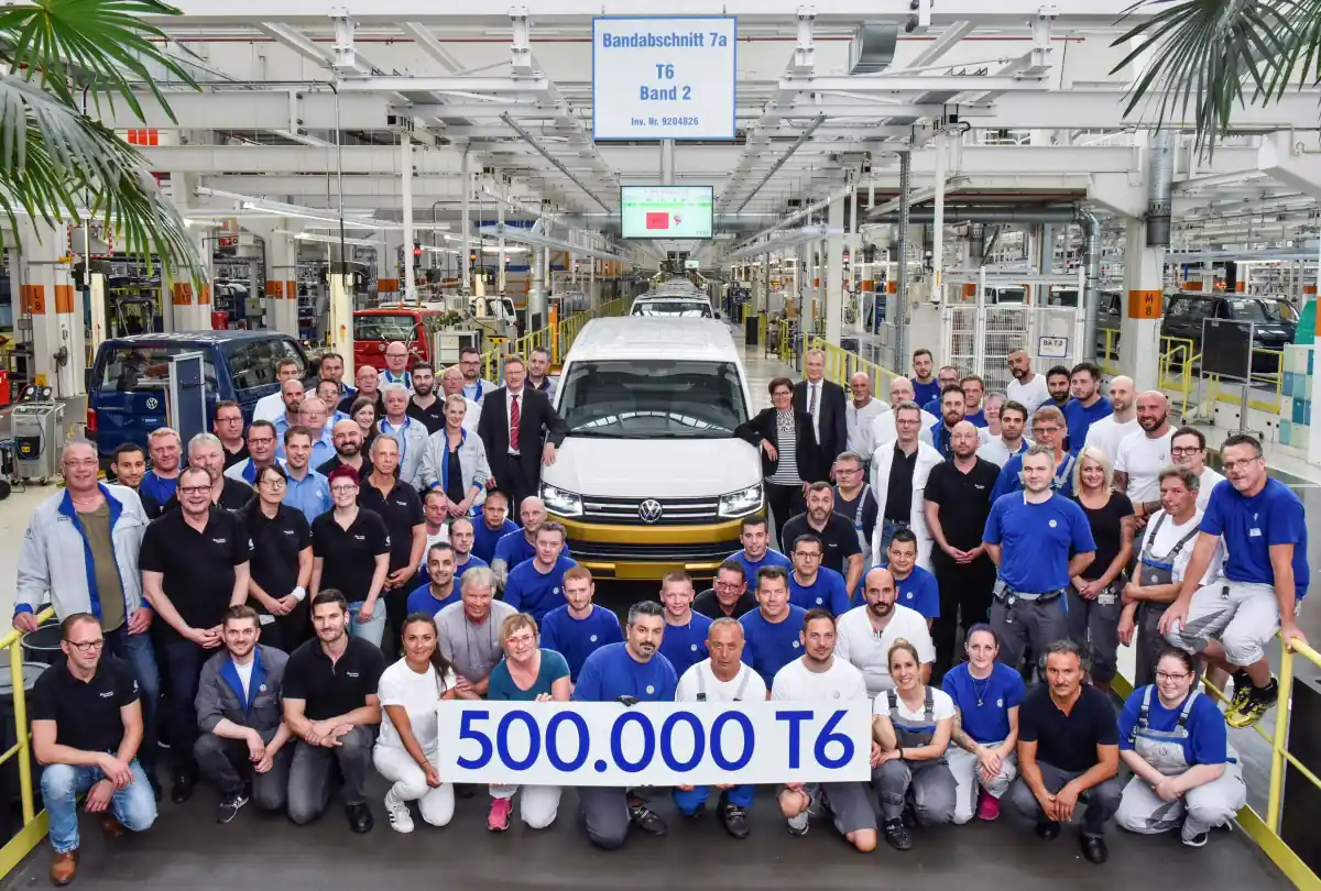 1 июня с конвейера сошел 5 0 0 - тысячный Transporter T последнего 6-го поколения - Multivan с двухцветной бело-желтой расцветкой кузова Candy - Weiß/Kurkumagelb. Всего с момента начала производства 8 марта 1956 года в Ганновере было выпущено 8,8 миллионов автомобилей модели Transporter.