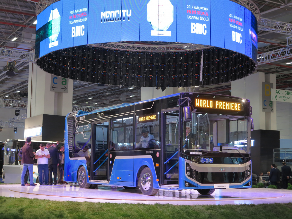 Если говорить о выставочной экспозиции Busworld Turkey 2018, то самым представительным был стенд турецкого производителя автобусов BMC. На площади 3000 м кв. было представлено 10 новых городских автобусов, среди которых и мировая премьера – 8,5-метровый электробус. Этот стенд также привлекал внимание необычным оформление – с высадкой живой травы и деревьев, а также необычной богатой развлекательной программой – с выступлением известных турецких артистов.