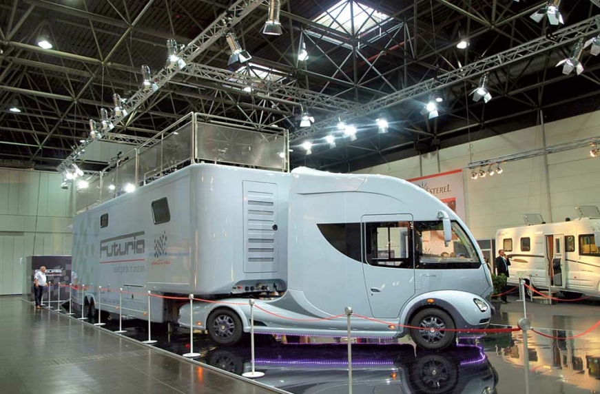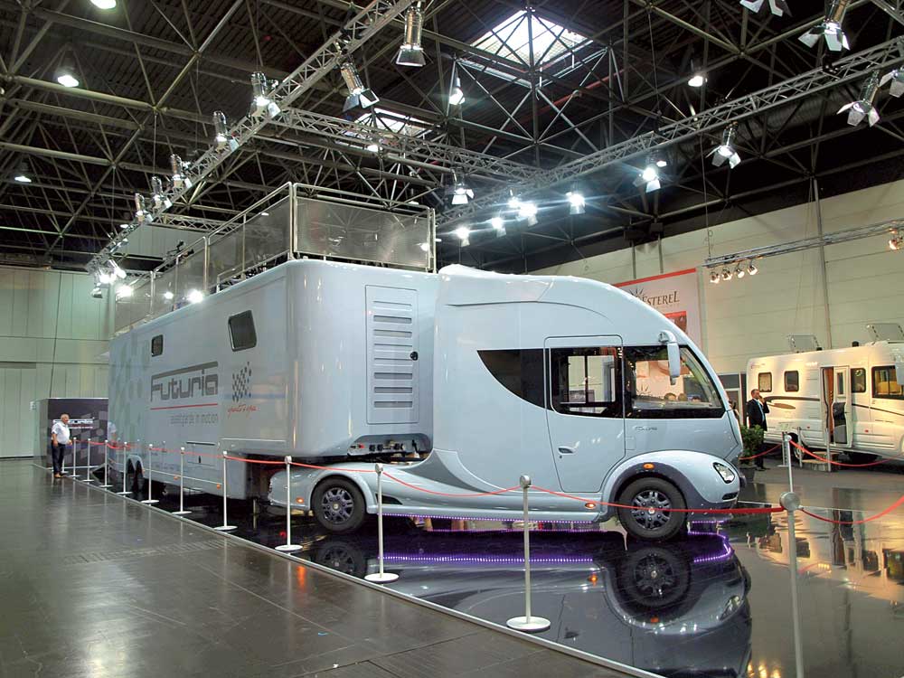 Обычно на каждой выставке есть экспонаты, привлекающие наибольший интерес своей экзотичностью или же размахом. Без сомнения, на Caravan Salon-2010 им стал 12-тонный Futuria Sports+Spa марки Most на базе IVECO, созданный при участии известного производителя домов на колесах Eura Mobil. Внушительный корпус намного легче, чем кажется, за счет новаторских технологий склеивания микроволокон в очень прочный, но легкий материал. Оснащение впечатляет: большой кожаный салон, бассейн с джакузи, гараж для спорткара… С таким «фаршем» Futuria стоит в четыре раза дороже своих предшественников – около 700 тысяч евро.