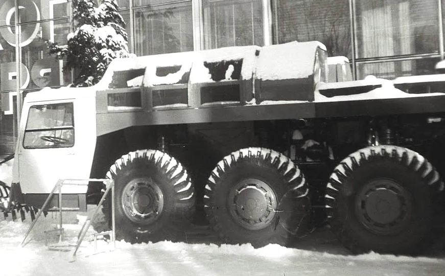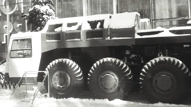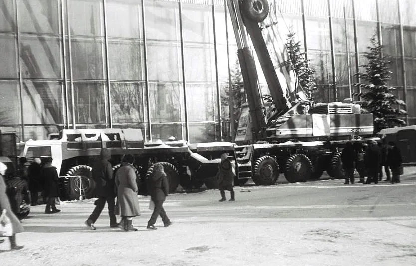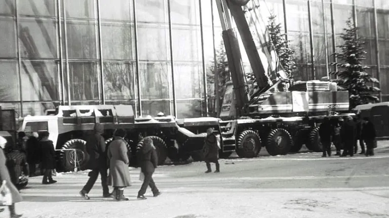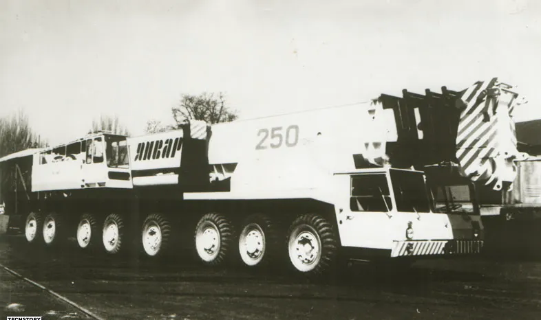 Эта машина была построена в единственном экземпляре в 1985 году. В основу ее 8-осного шасси легли два ракетовоза МАЗ-543 (8х8). Шесть пар колес получили гидропневматическую подвеску, колеса четырех первых осей были поворотными. Стрела крана могла раздвигаться с 14,4 до 51,3 м. При этом можно было установиться 10-метровый удлинитель и гусек на 20 – 45 м. В итоге общая высота подъема груза достигала 96 метров.
