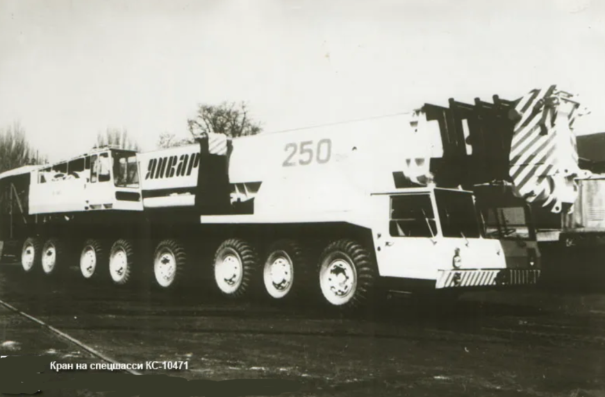 Автокраны «Январец» , позже переименованные в «Краян», изготавливались в Одессе, на Заводе тяжелого краностроения им. Январского восстания. В этом классе им не было равных на территории бывшего Союза. Остановимся на самой интересной разработке одесситов. Это автокран КС-10471 грузоподъемностью ни много ни мало 250 тонн.