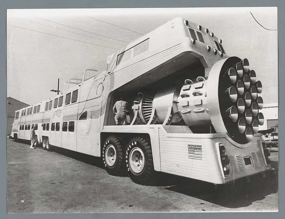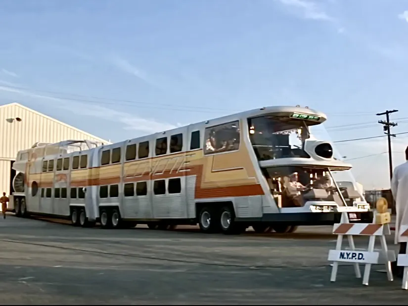 За сюжетом фільму автобус був обладнаний «ядерною» силовою установкою, але реальною на ньому стояв двигун Ford і автоматична коробка передач Allison. За величезним лобовим склом знаходилося два водійські місця, зі своїм кермом, хоча перемикання передач здійснювалося лише з лівого кокпіту.