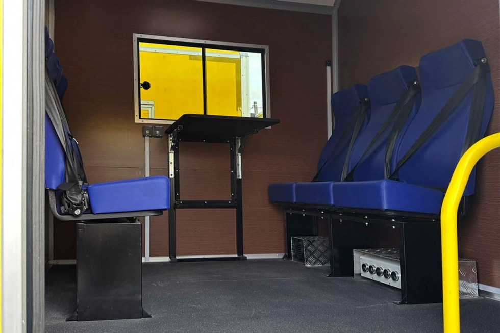 Кузов разделен на два отсека. Первый – пассажирский, оборудованный шестью сиденьями. Здесь установлены автономный дизельный отопитель, откидной столик, вещевой шкаф, вентиляционный люк. Имеется и переговорное устройство с кабиной водителя, в которой находятся еще два места для членов ремонтной бригады. Посадку-высадку в пассажирский отсек обеспечивает боковая дверь с заниженным входом.