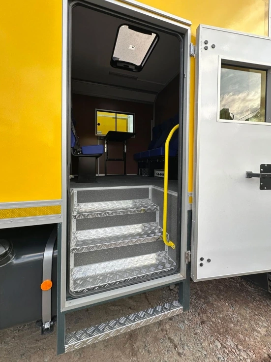 На внедорожном шасси IVECO Eurocargo ML110-250 (4х4) установлен кузов-фургон. В его основе лежит стальной пространственный каркас, обшитый снаружи оцинкованным листом толщиной 0,7 мм, с полимерным покрытием. В качестве утеплителя используется экструдированный пенополистирол толщиной 40 мм. Внутренняя обивка выполнена из алюкомпозитных панелей толщиной 3-4 мм.