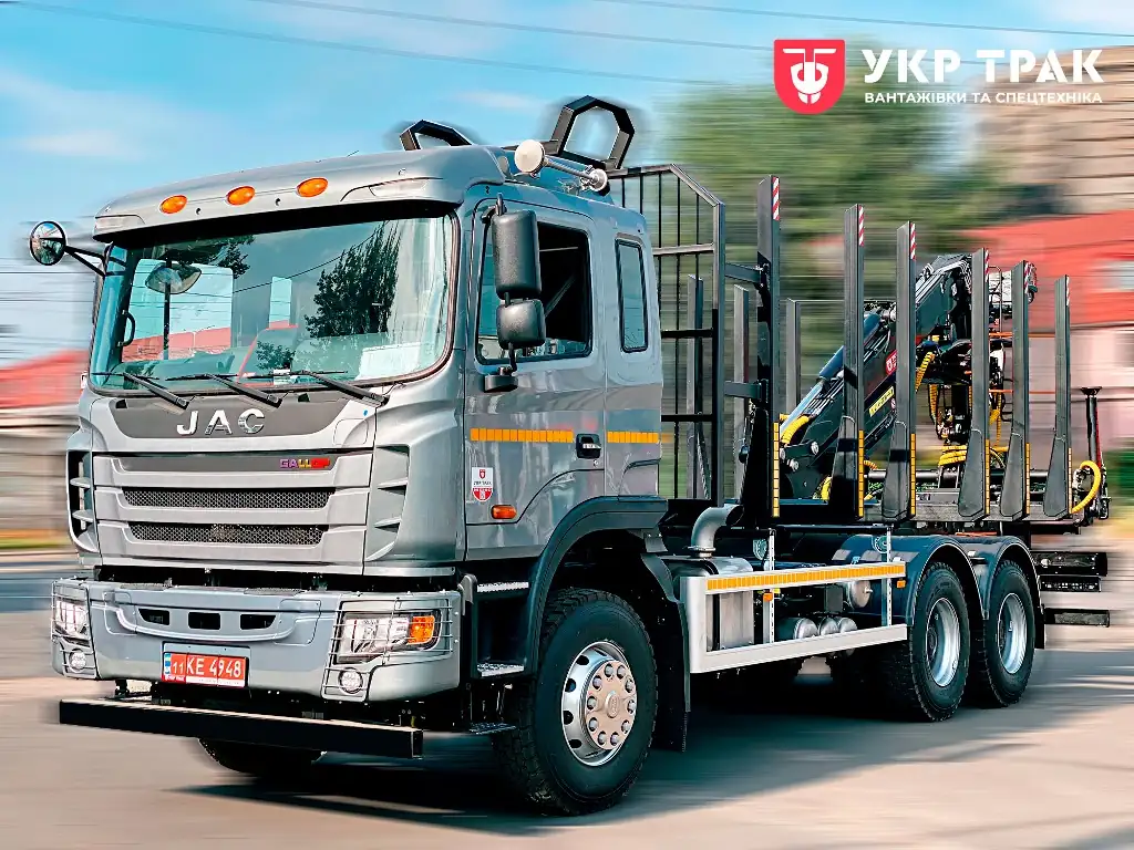 Лісовоз на шасі JAC N350 має загальну вантажопідйомність 24 400 кг та колісну формулу 6х4. Автомобіль оснащений двигуном об’ємом 9726 см³ і потужністю 342 к.с.