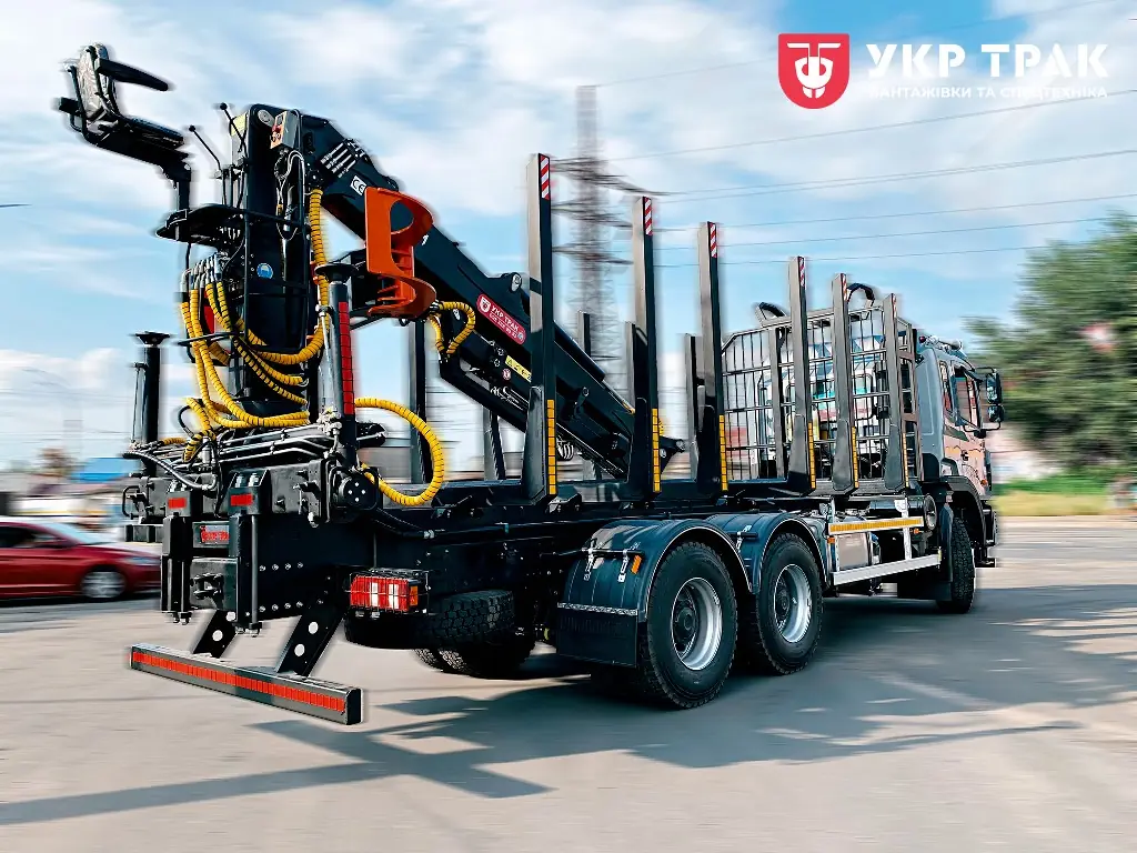 На лісовозі також встановлено маніпулятор із розміщенням на кормі автомобіля. Він оснащений гідравлічним захватом універсального типу з ротатором та максимальним вильотом стріли 7,5 м. Вантажопідйомність на максимальному вильоті складає 1 400 кг, а на відстані 4 м – 2 600 кг. Додаткові переваги маніпулятора включають гасник коливань захвату, систему аварійної зупинки крану відповідно до техніки безпеки, а також освітлювальне обладнання на стрілі та рукояті для роботи в темний час доби.