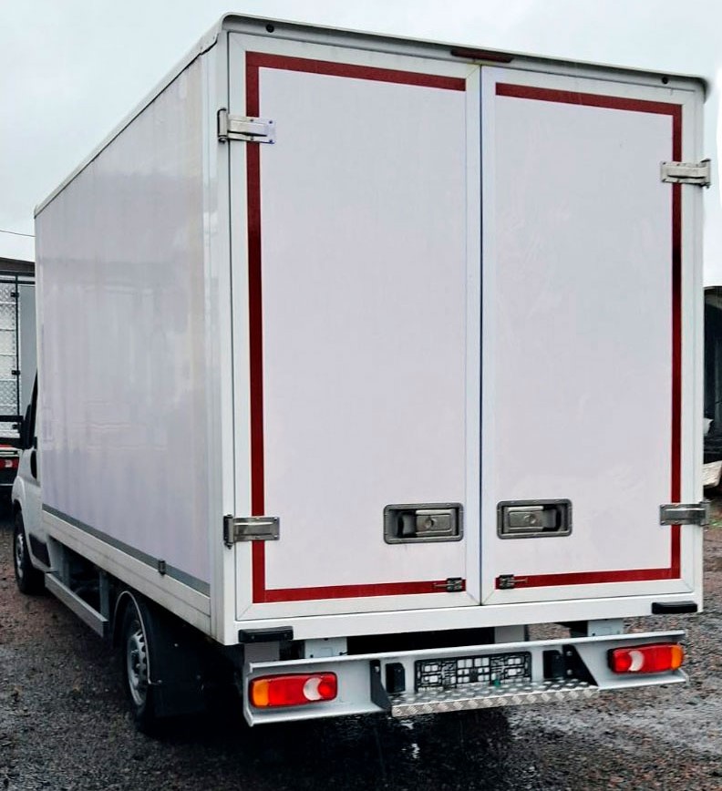 Фургон отличается сверхлегкой конструкцией. Внешний каркас изготовлен из алюминиевых профилей. Стенки надстройки выполнены из многослойных, бесшовных сэндвич-панелей. Проем задних распашных дверей, а также петли – из нержавеющей стали. Для лучшей герметичности использованы импортные резиновые уплотнители.