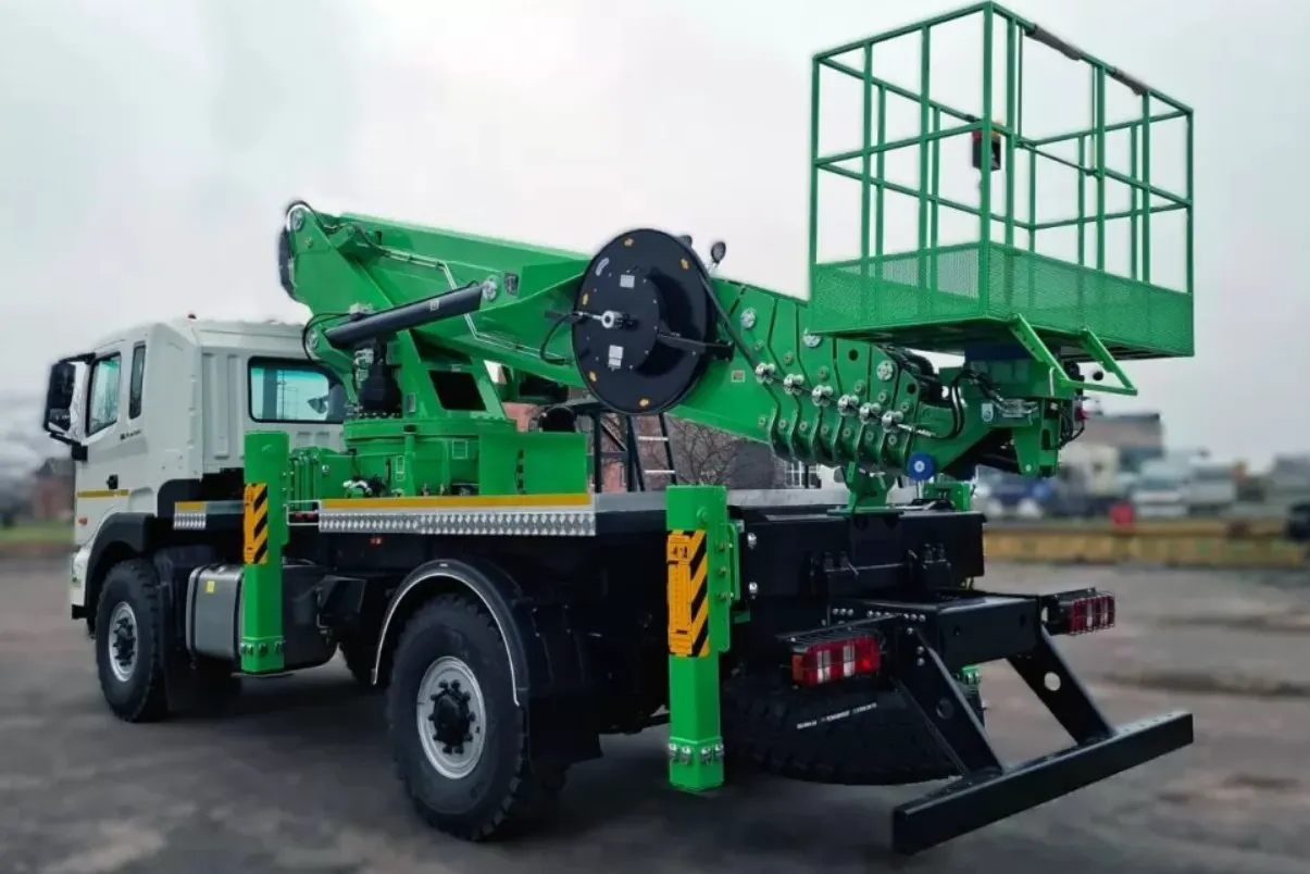 Сегодня для восстановления объектов критической инфраструктуры в Украине очень востребованы автогидроподъемники на полноприводных шасси, подходящие для бездорожья. Завод спецтехники «Техкомплект» на днях поставил клиентам сразу две таких машины. Начнем с новинки – автовышки южнокорейского производства DASAN CT400EX на шасси JAC N240 (4х4), которая уже работает у энергетиков в Полтавской области.