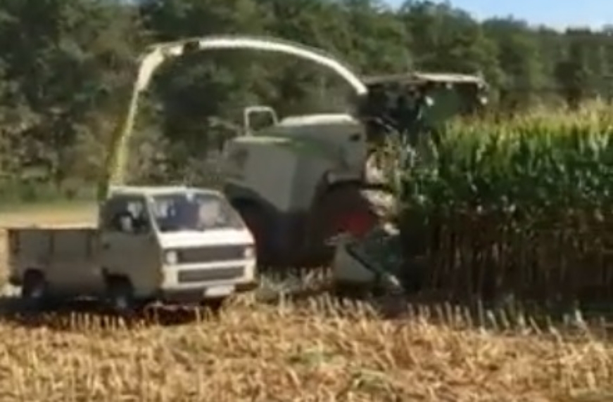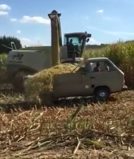 Понятное дело, что ребята «запрягли» Transporter c комбайном для потехи, однако они сделали машине отличную рекламу, показав ее универсальность.