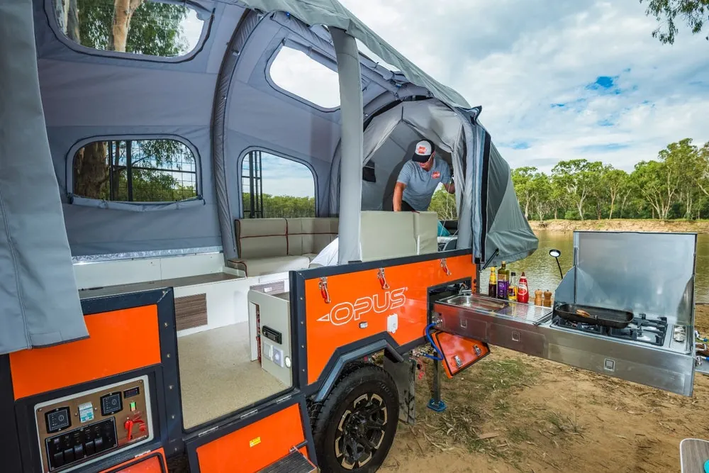 Компания Opus Camper прославилась на весь мир уникальными прицепными кемперами, которые раскладываются в комфортабельные жилые палатки всего за 90 секунд. Изюминка прицепов – запатентованная система Air Opus, представляющая собой мощный насос, который, собственно говоря, и надувает домик для туристов.