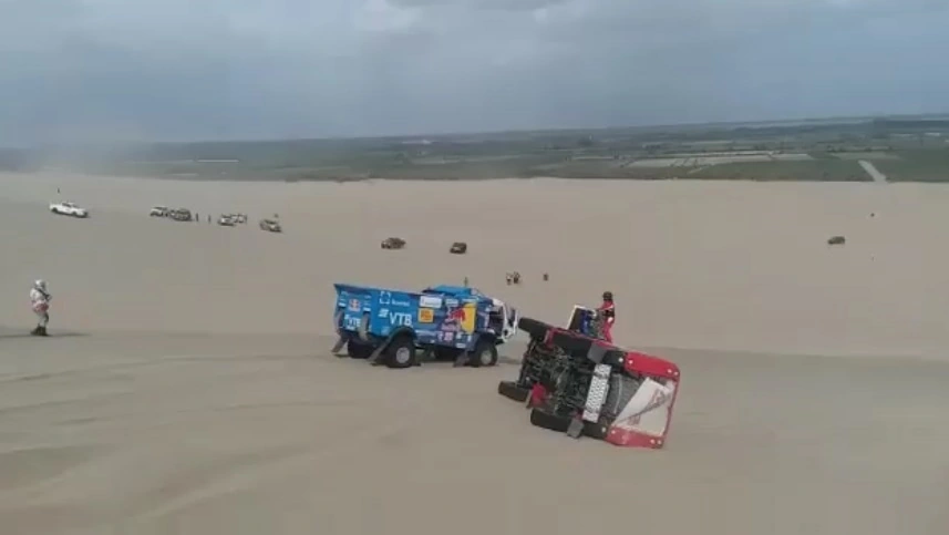 Ралли-рейд Дакар 2019, стартовавший на днях в Перу, для белорусской команды МАЗ-СпортАвто преподнес неприятный сюрприз. На втором этапе экипаж 501 под управлением Вячеслава Вязовича попал в аварию на грузовике МАЗ. Он отрывался от преследовавшего его машины российской команды КАМАЗ-Мастер.