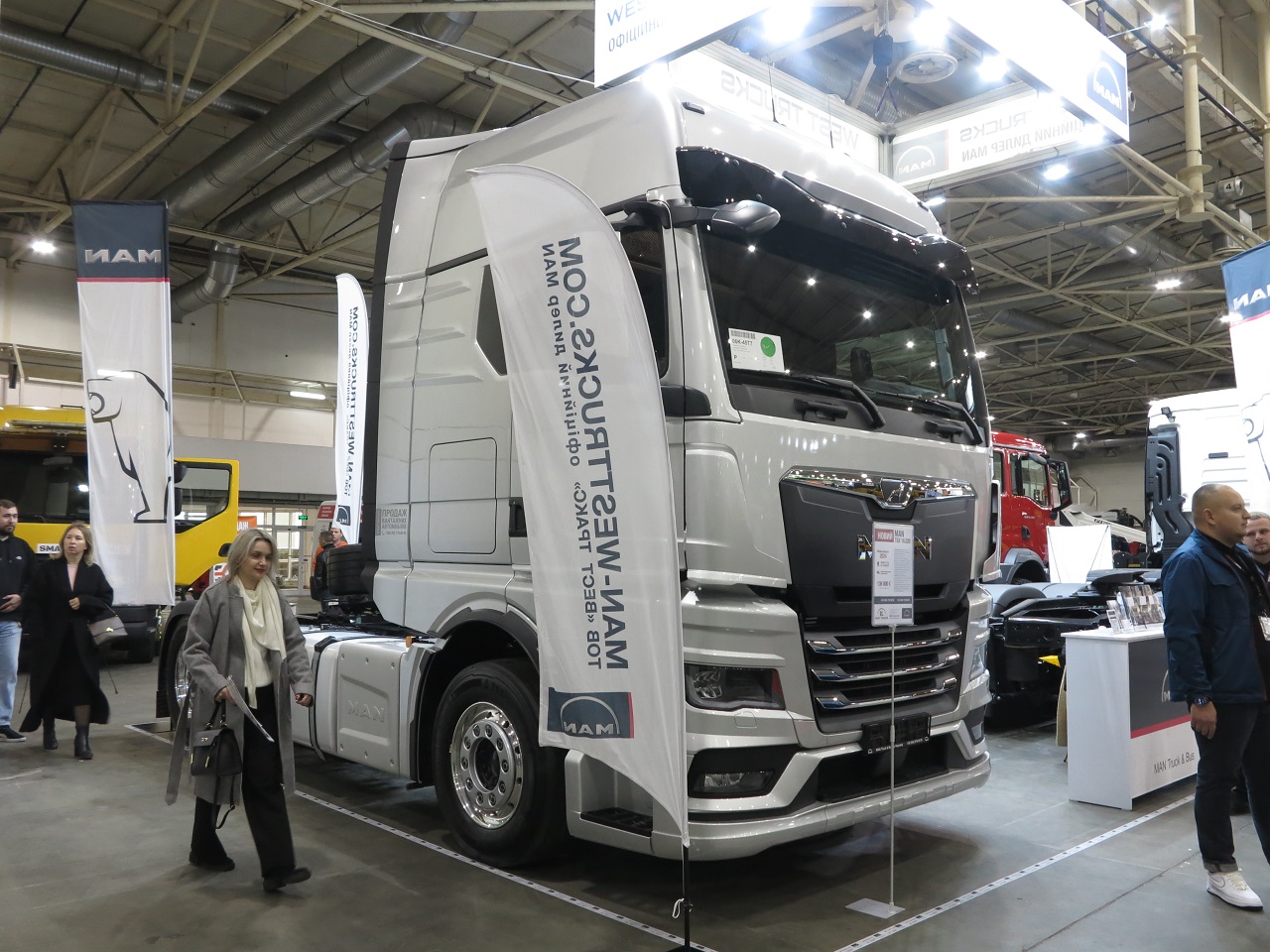 На виставці можна ознайомитись і з найновішими вантажівками марки MAN, які представляє компанія West Trucks – офіційний дилер MAN Truck & Bus Ukraine. Тут показано три машини. Це повнопривідне шасі TGM 18.320 (4х4) з дворядною кабіною. Машина розрахована на повну масу 18 т та оснащується трубодизелем D0836 потужністю 320 к. с. у парі з автоматичною КП TipMatic.