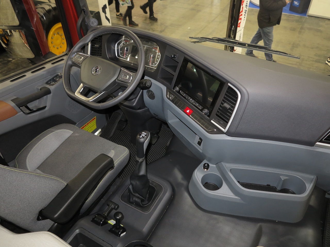 На стенді також можна побачити й середньотоннажний самоскид на шасі Dayun CGC1140 – повною масою 14 т та вантажопідйомністю 8 т. Застосовується 12-кубовий кузов тристороннього розвантаження. На машині встановлений турбодизель Weichai WP4 робочим об’ємом 4,1 л та потужністю 184 к. с. Коробка передач – 8-ступенева Fast Gear.