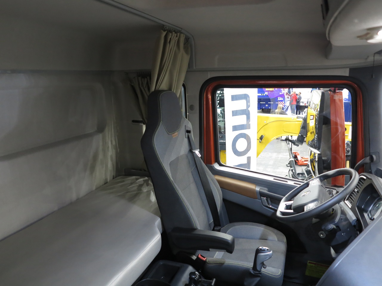 Машина укомплектована 12,7-літровим турбодизелем Ecotorq потужністю 450 к. с. та автоматичною 16-ступеневою коробкою передач власного виробництва – Ecotorq 16S 2600 DD, яка з’явилася на вантажівках марки лише цього року. Машина обладнана комфортабельною кабіною із двома спальними полицями. В оснащення входять системи допомоги водієві ADAS, які є обов’язковими в Єворпі з липня 2024 року.